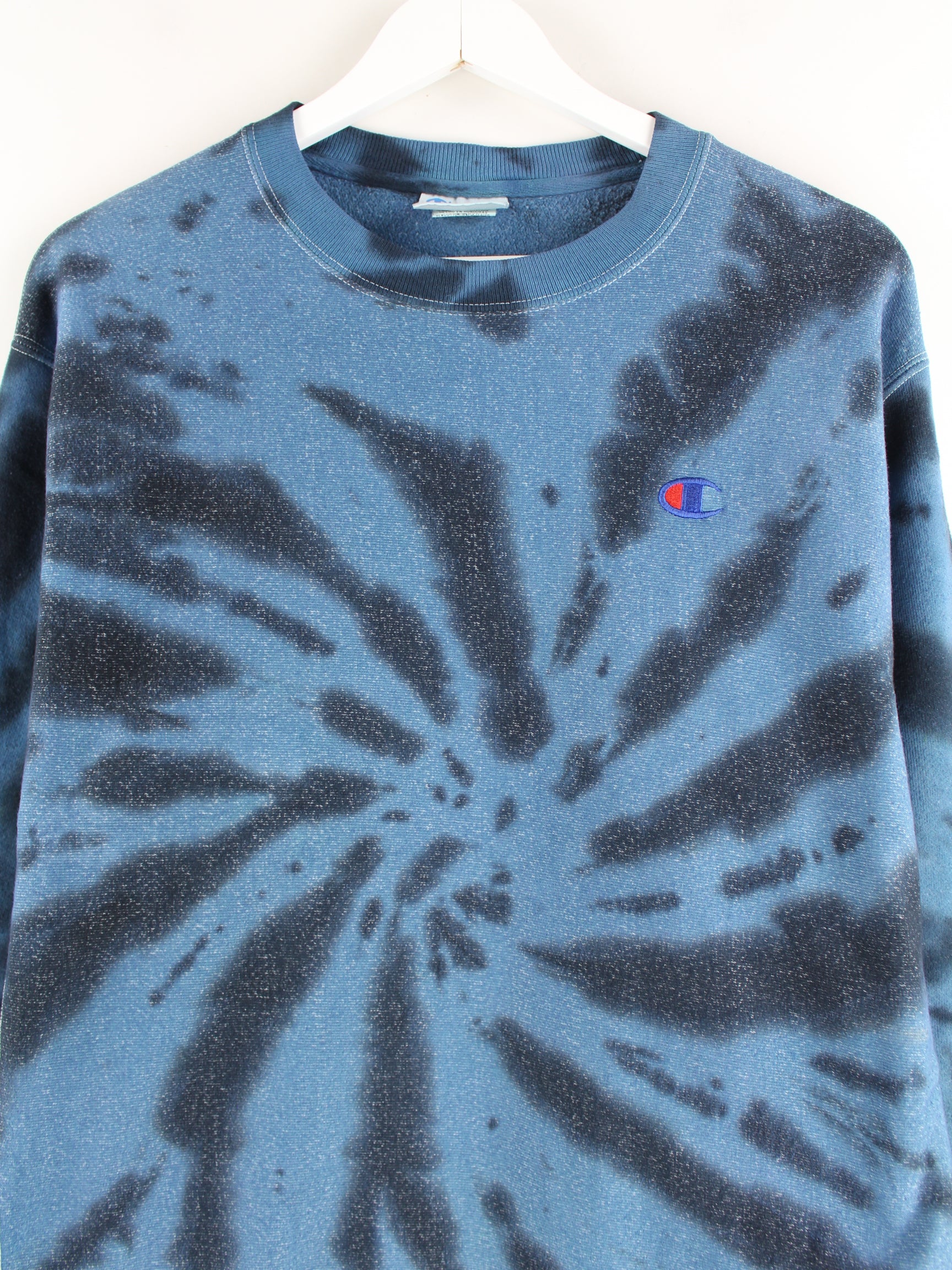 Champion y2k Reverse Weave Tie Dye Sweater Blau L