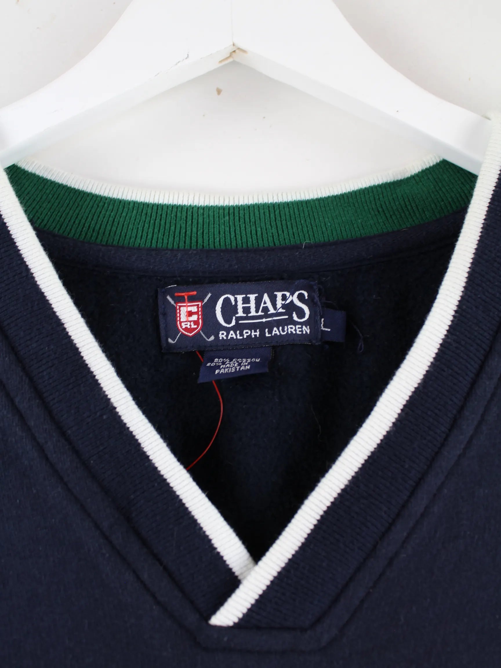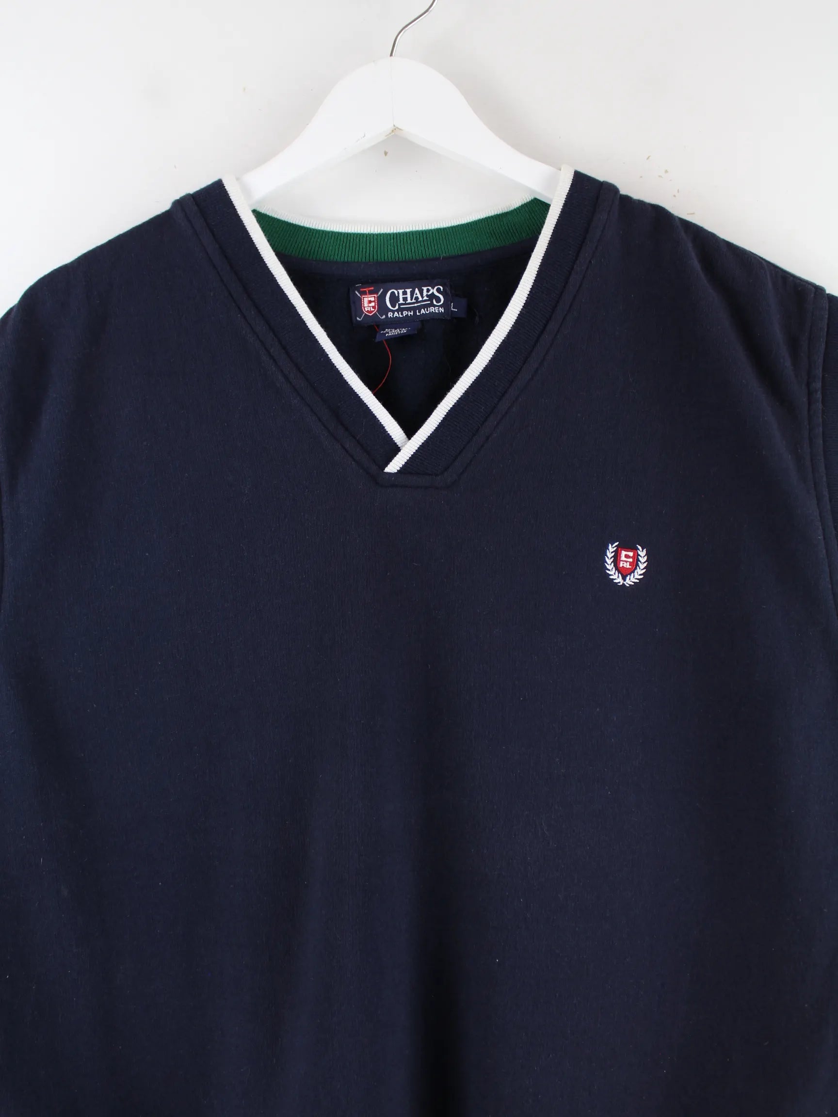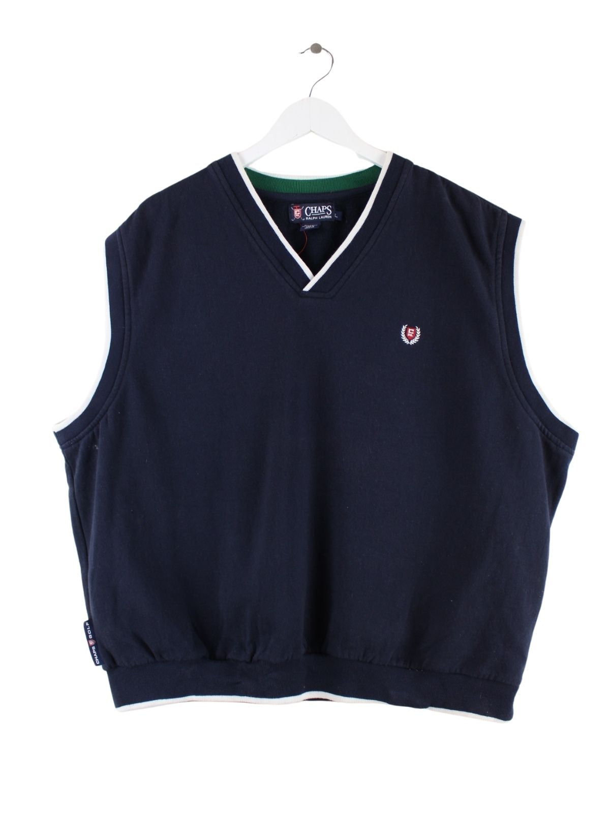 Blauer Pullunder von Chaps by Ralph Lauren in Größe L. Er ist aus Baumwolle hergestellt und in sehr gutem Zustand im Bestand.