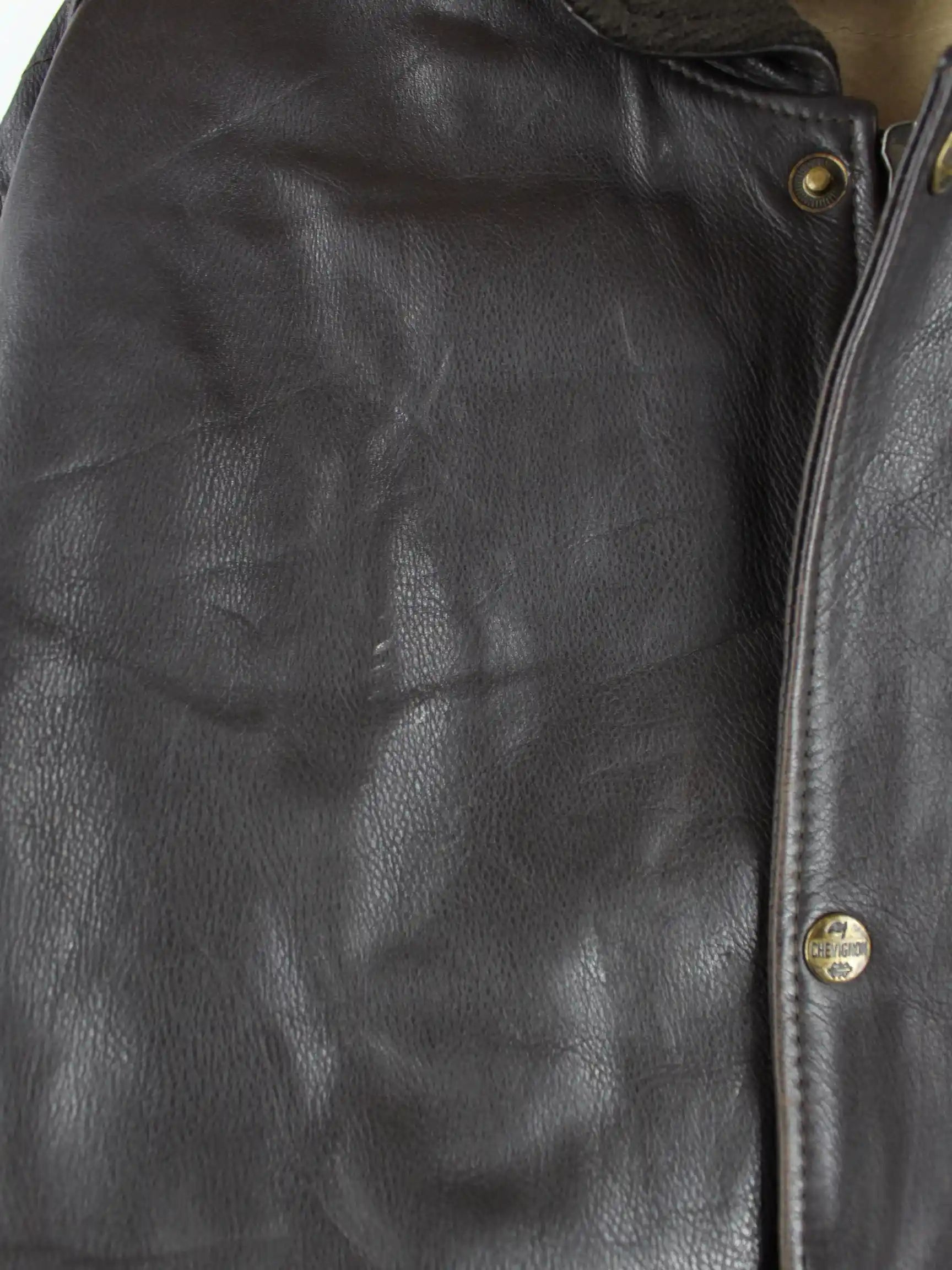 Jacke von Chevignon in Größe XXL aus den 90'ern. Sie ist aus Leder und in Schwarz zu haben.