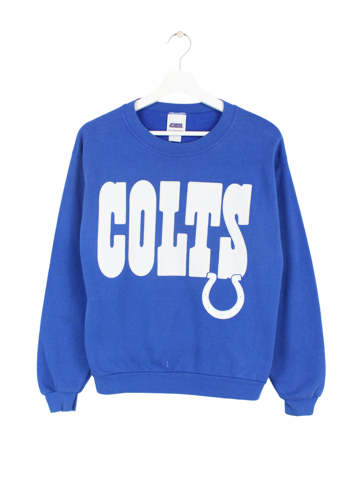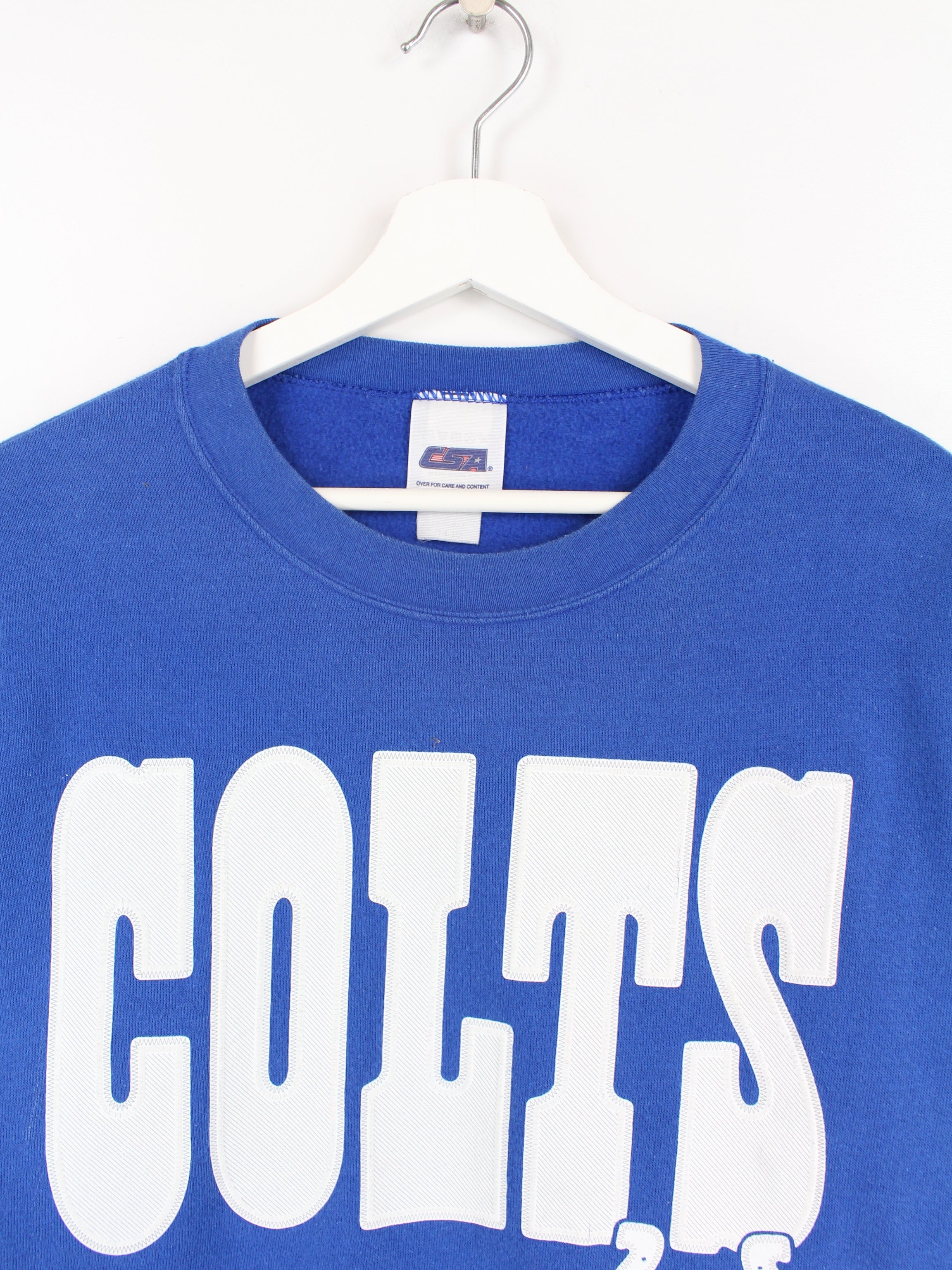 Blauer Vintage Sweater der Marke CSA, mit weißem Colts Print.