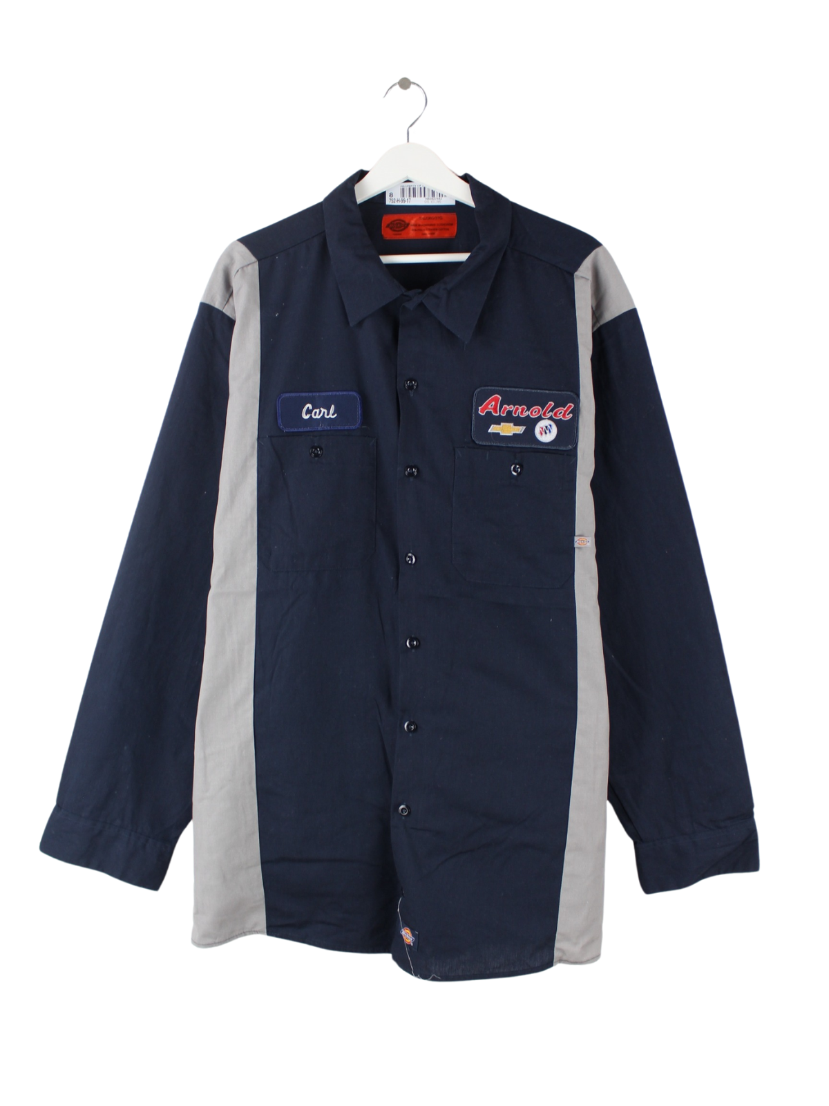 Blaues Freizeit Hemd mit gestickten Motiven vom Label Dickies in Größe 3XL. Es ist aus Baumwolle hergestellt und in sehr gutem Zustand auf Lager.