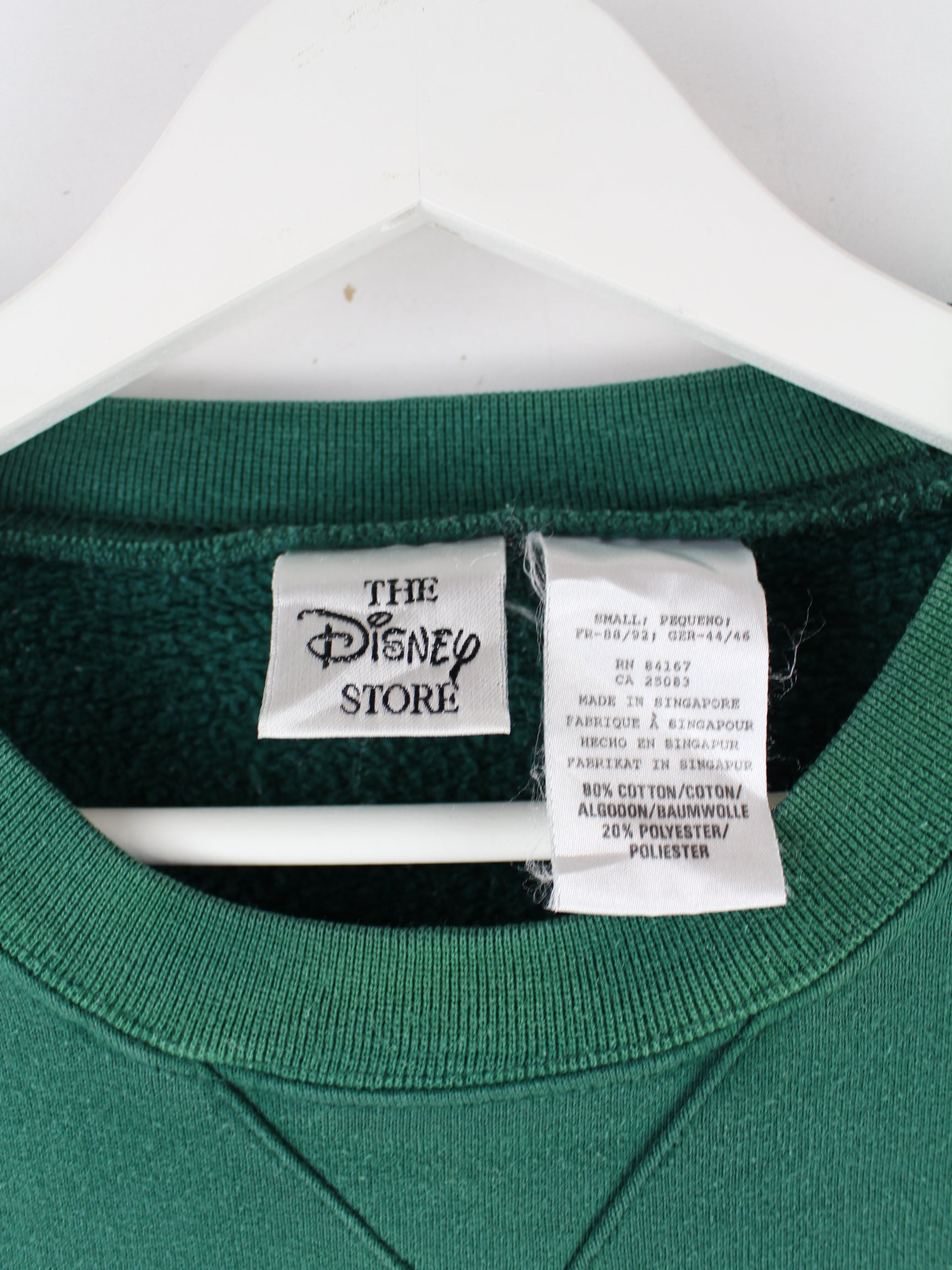 Sweater vom Label Disney mit gestickten Motiven in Größe S aus den 90'ern. Er ist aus einer Baumwollmischung gefertigt und in Grün in Stock.