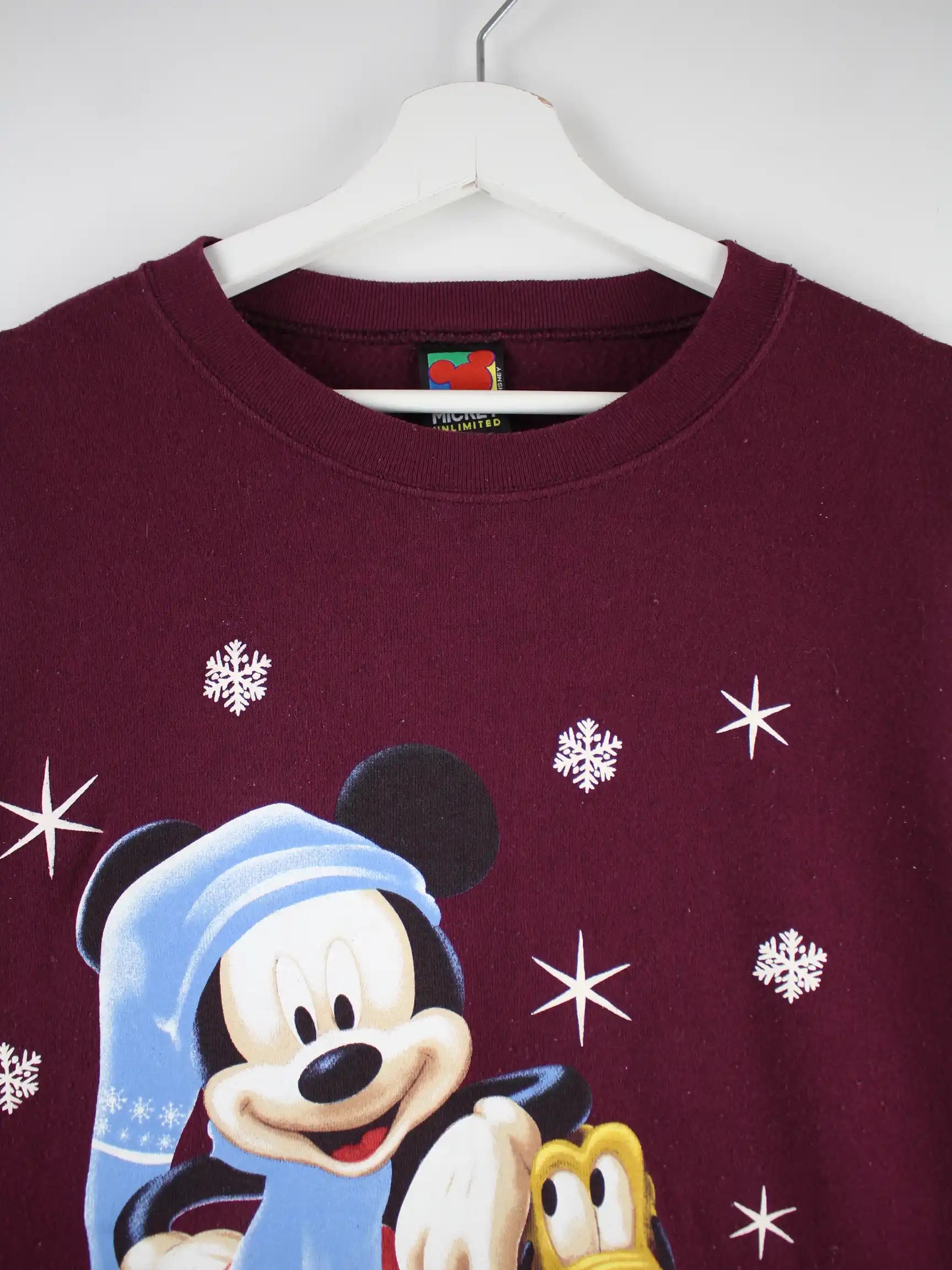 Disney Damen 00s Mickey & Pluto Print Sweater Lila XXL