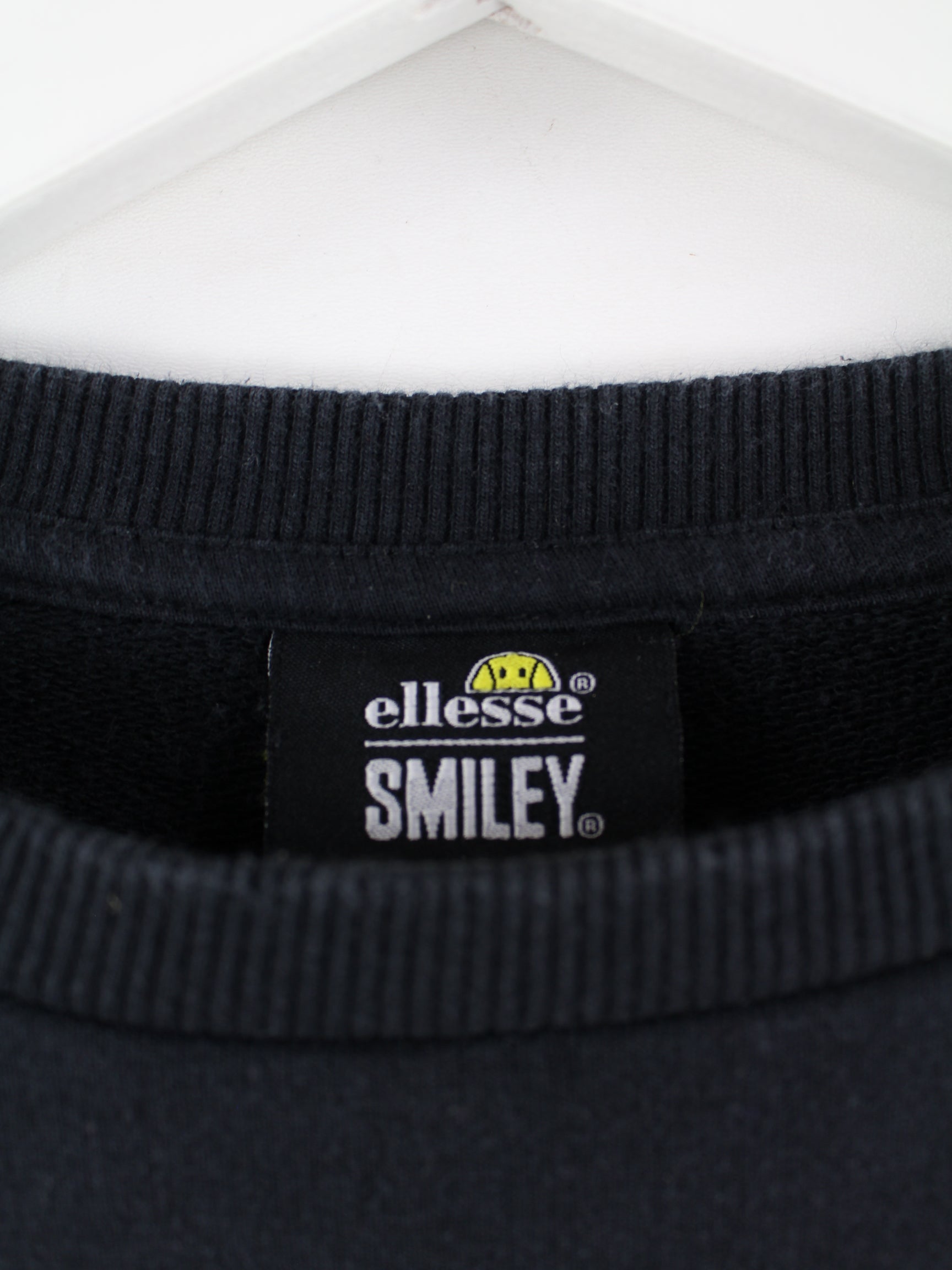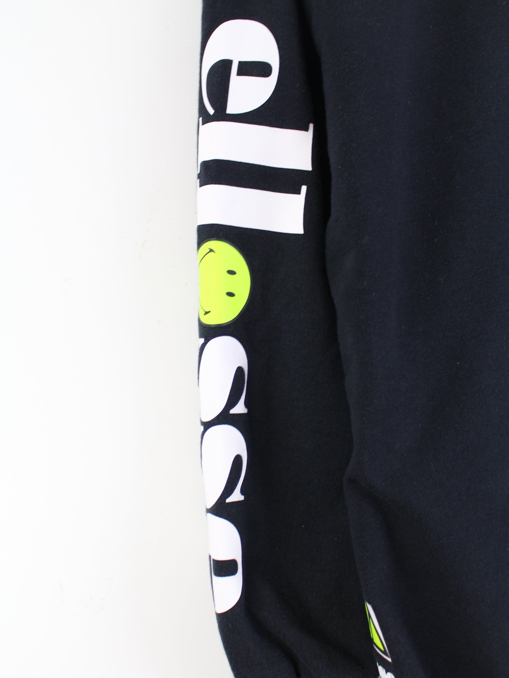 Sweater aus dem Hause Ellesse in Größe M. Er ist aus einer Baumwollmischung gefertigt und in Schwarz bei uns zu bekommen. Mit chiquem Smiley Print.