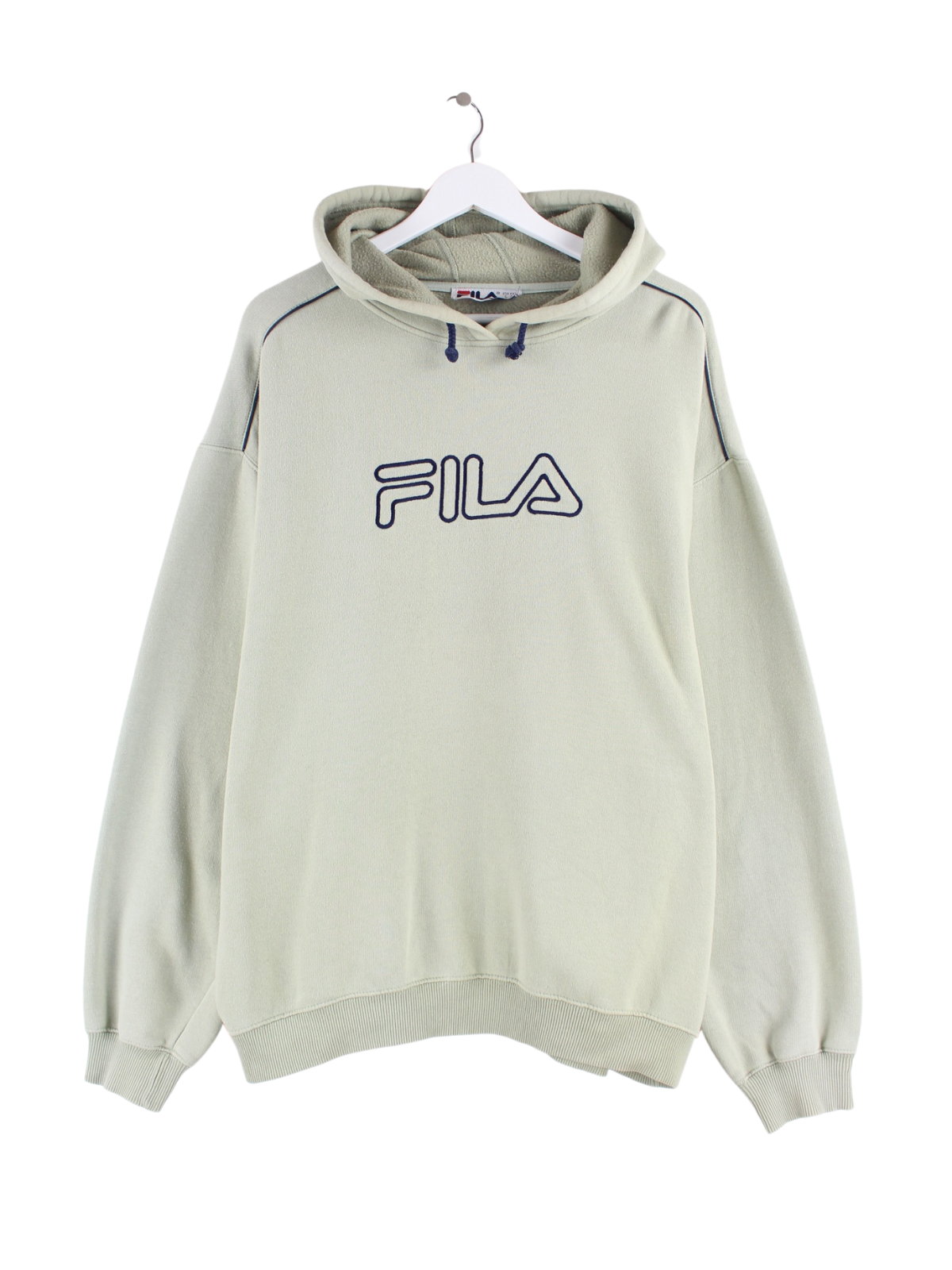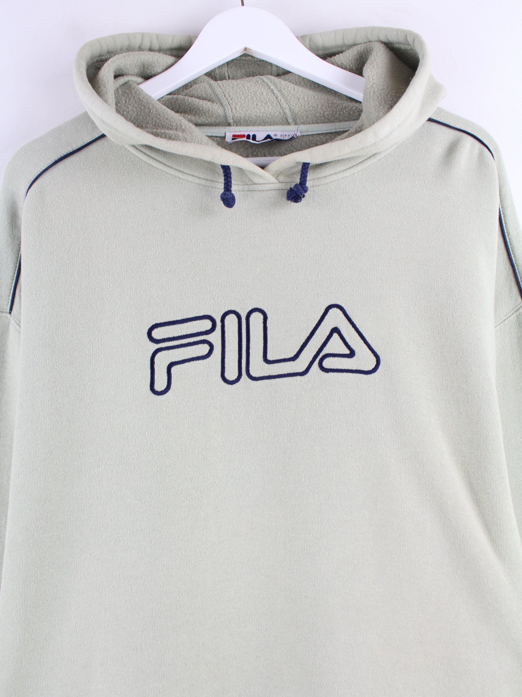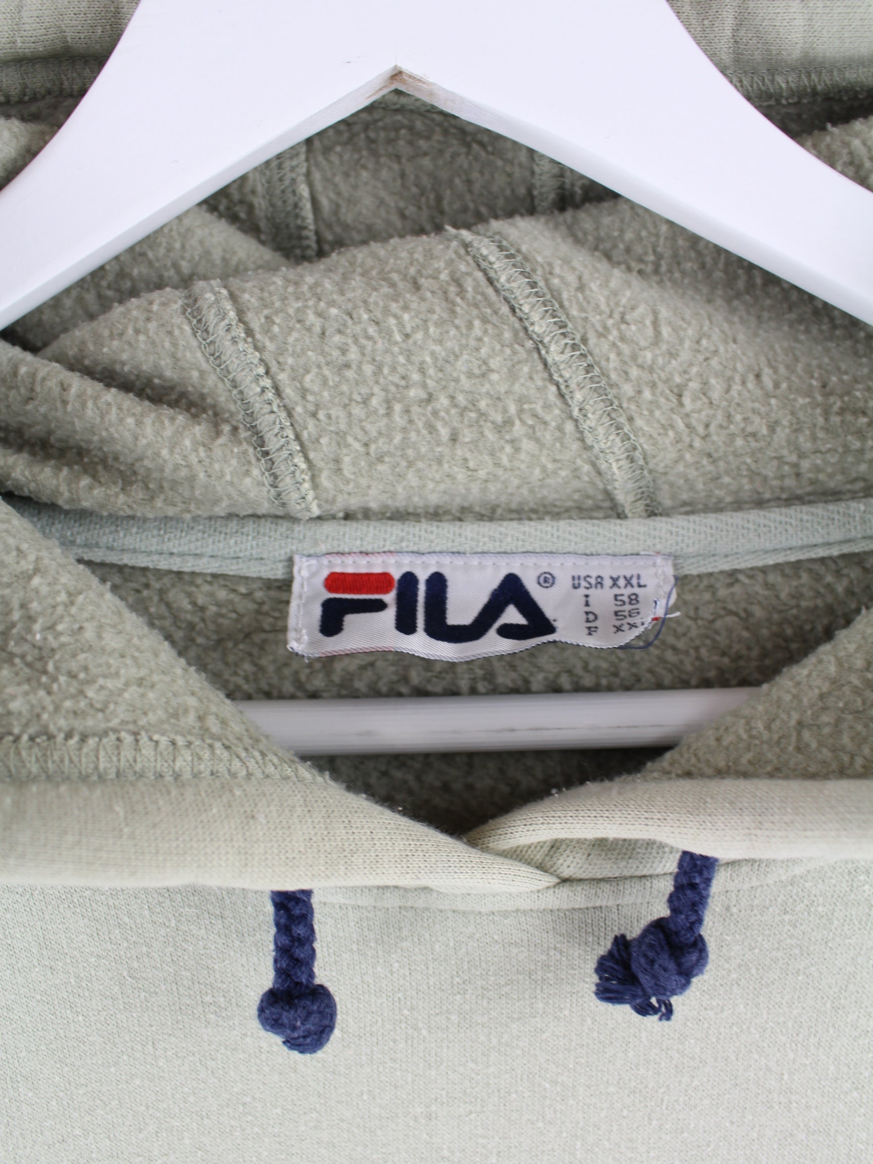 Grüner Hoodie mit Stickereien des Labels Fila in Größe XXL. Er ist aus einer Baumwollmischung gemacht und in gutem Zustand auf Lager.