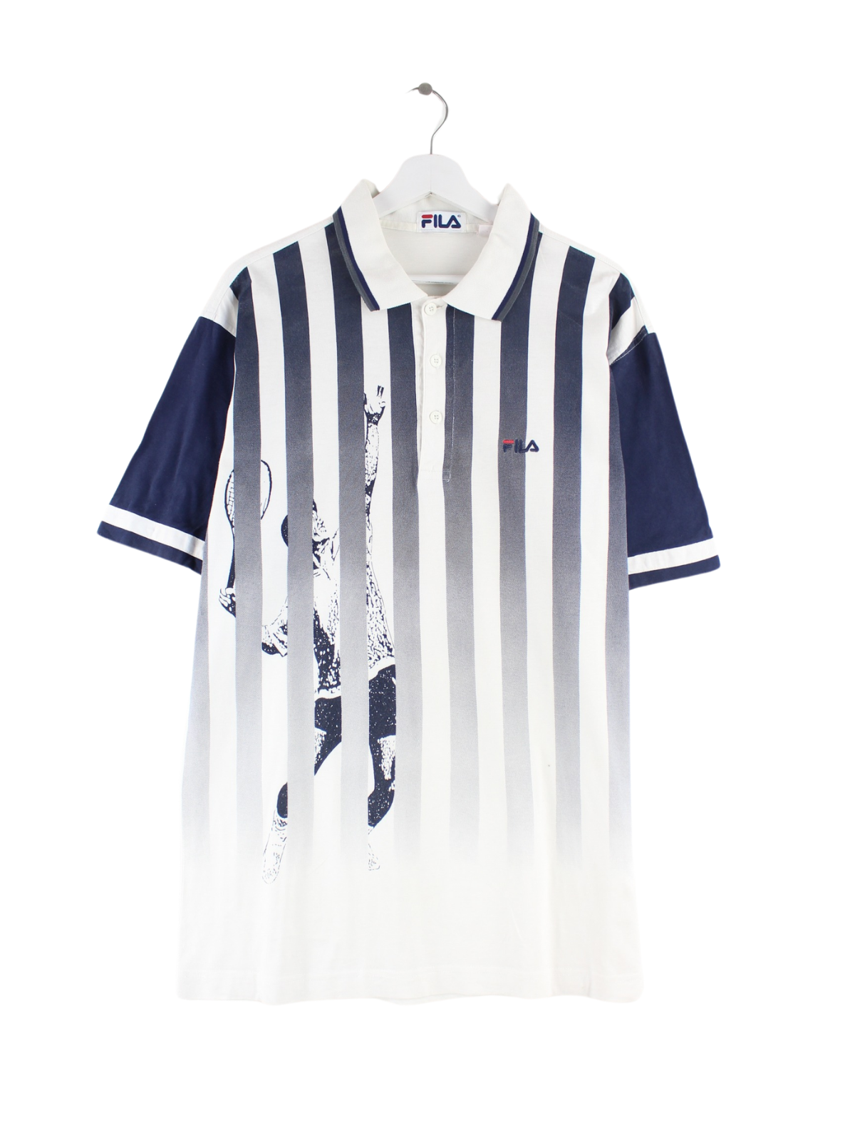 Fila 90s Vintage Tennis Print Polo Weiß XL