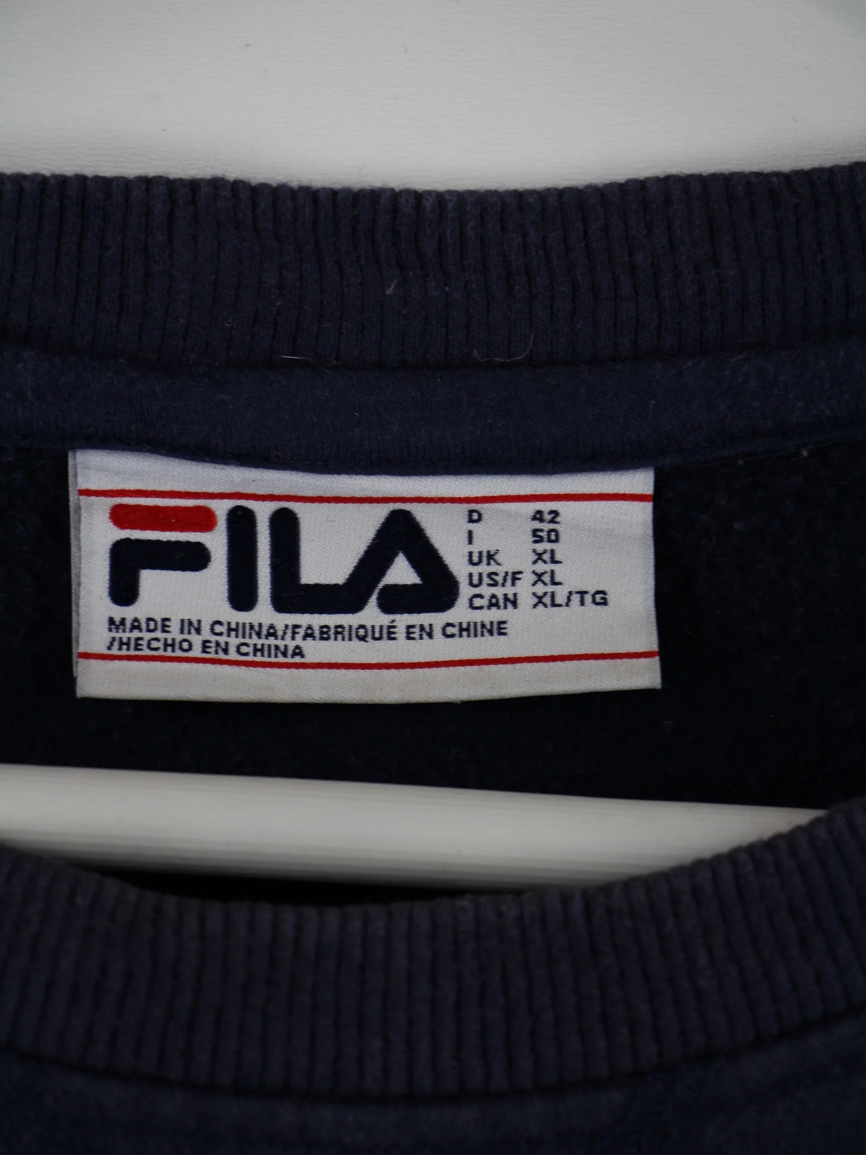 Sweater vom Label Fila in Größe M. Er ist aus einer Baumwollmischung gefertigt und in Blau vorrätig.
