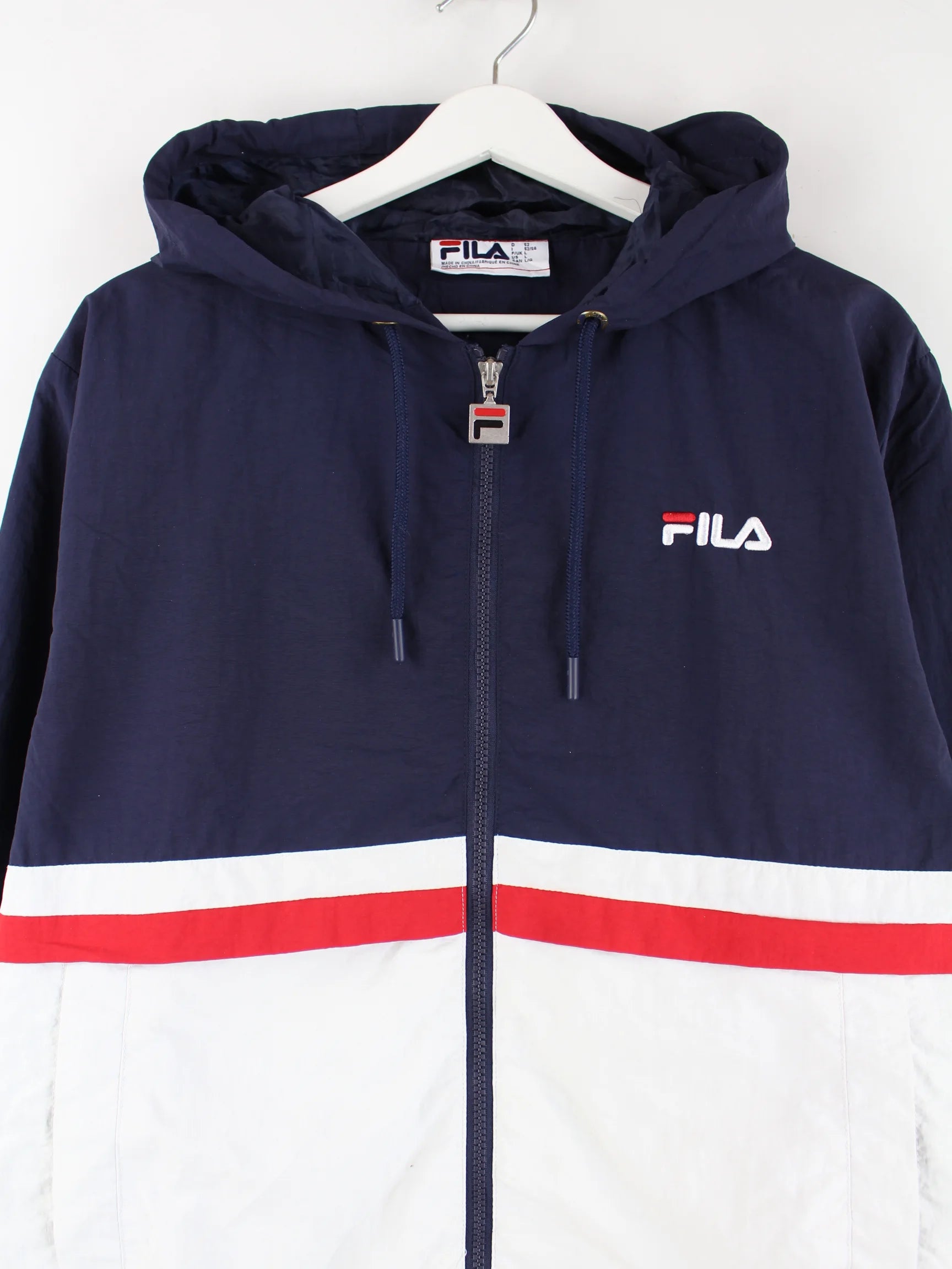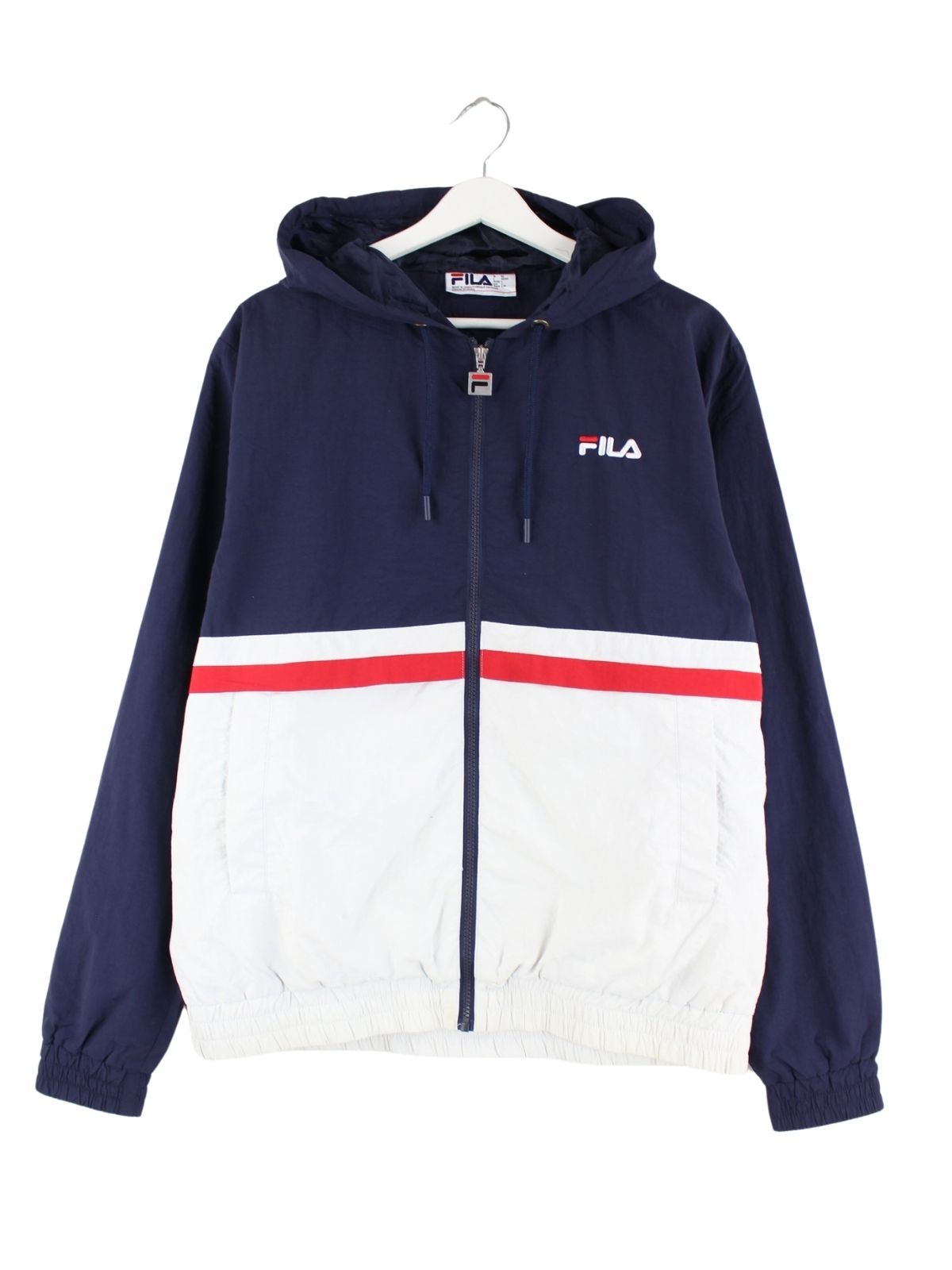 Blaue Leichte Jacke vom Label Fila in Größe L. Sie ist aus Synthetik produziert und in sehr gutem Zustand bei uns vorrätig.