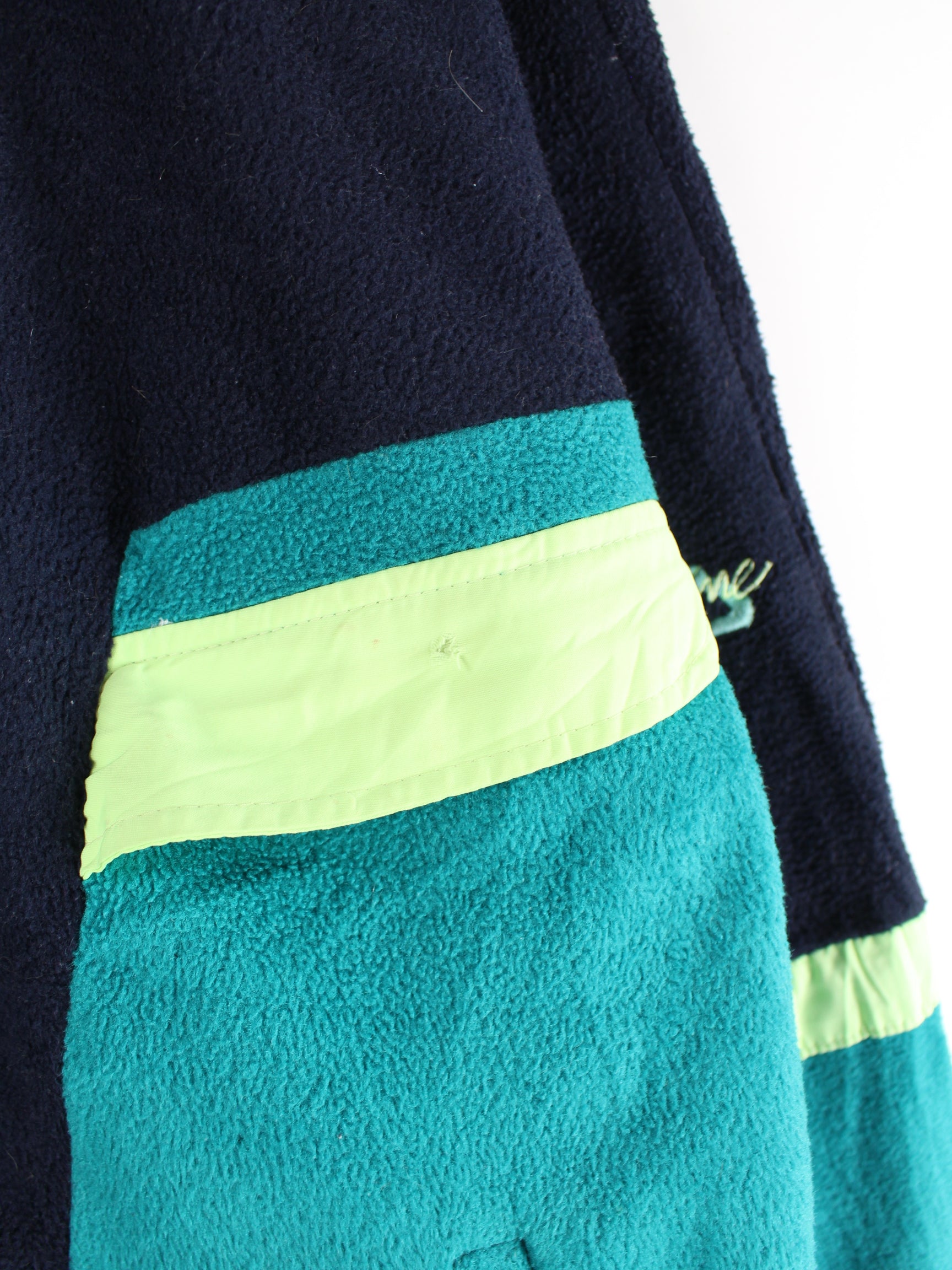 Mehrfarbige Leichte Jacke aus dem Hause Fila aus den 90'ern in Größe XL. Sie ist aus kuscheligem Fleece produziert und in gutem Zustand bei uns zu bekommen.