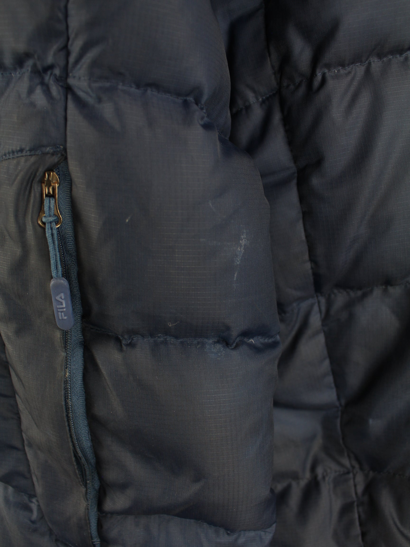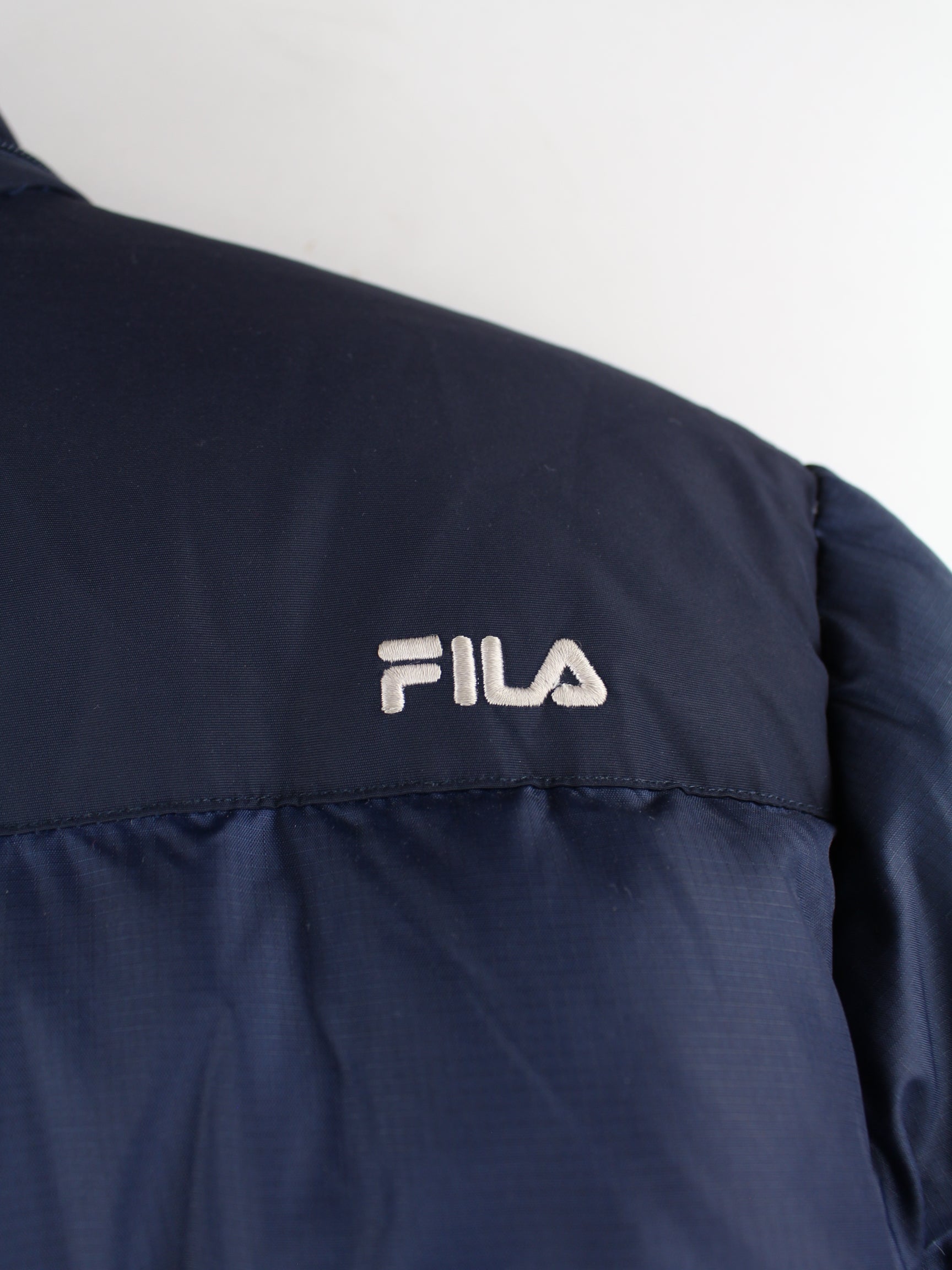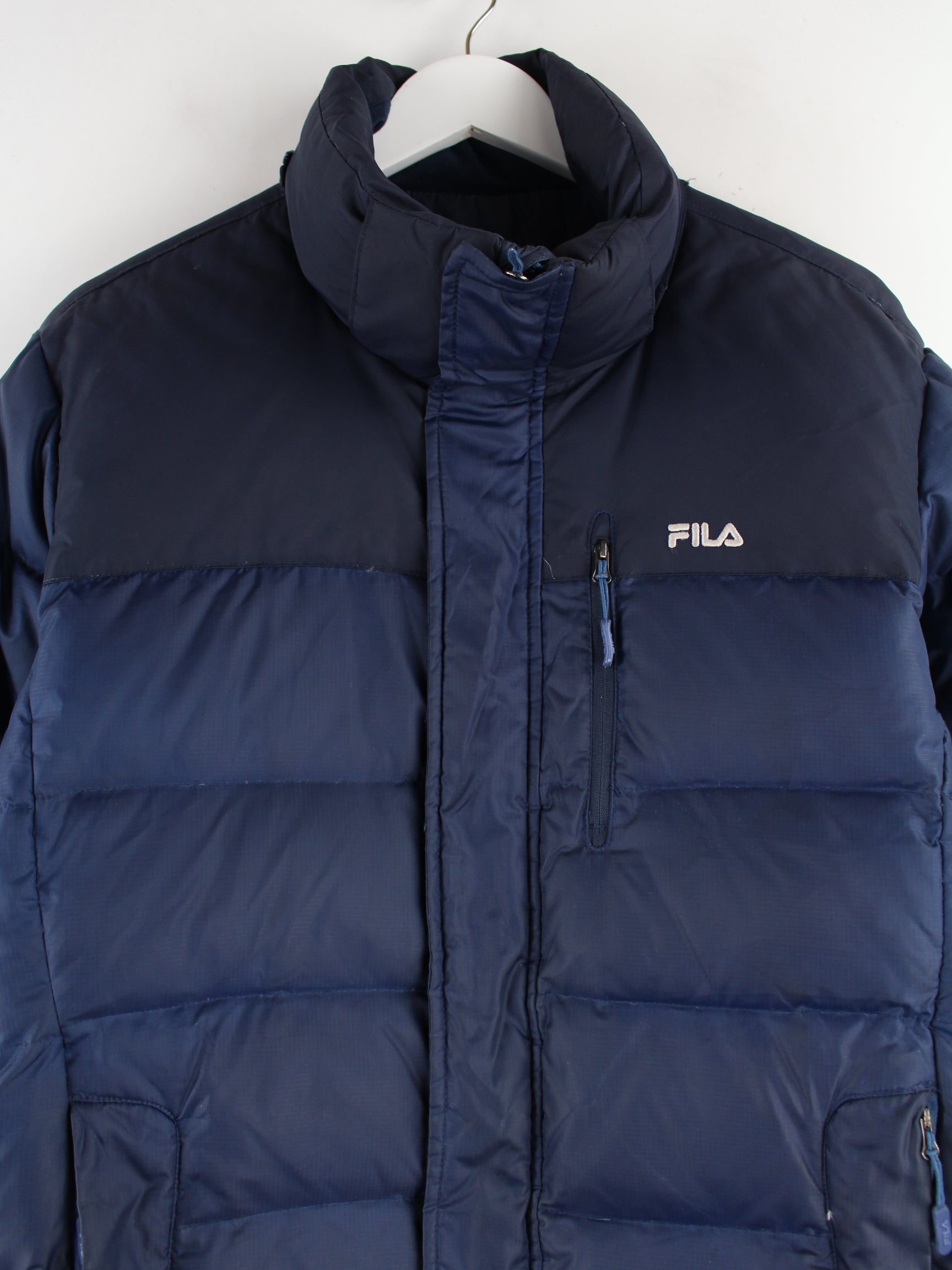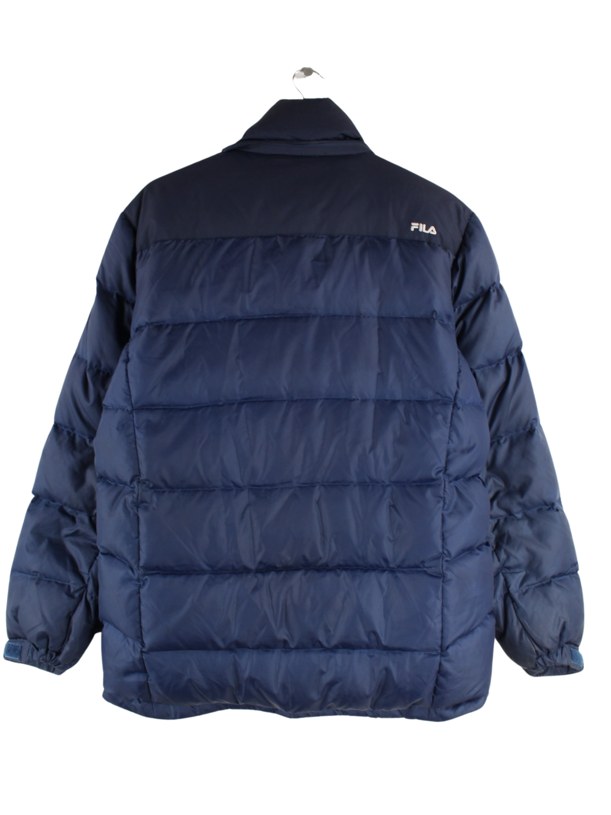 Blaue Jacke des Labels Fila in Größe L. Sie ist aus Synthetik und in gutem Zustand zu haben.