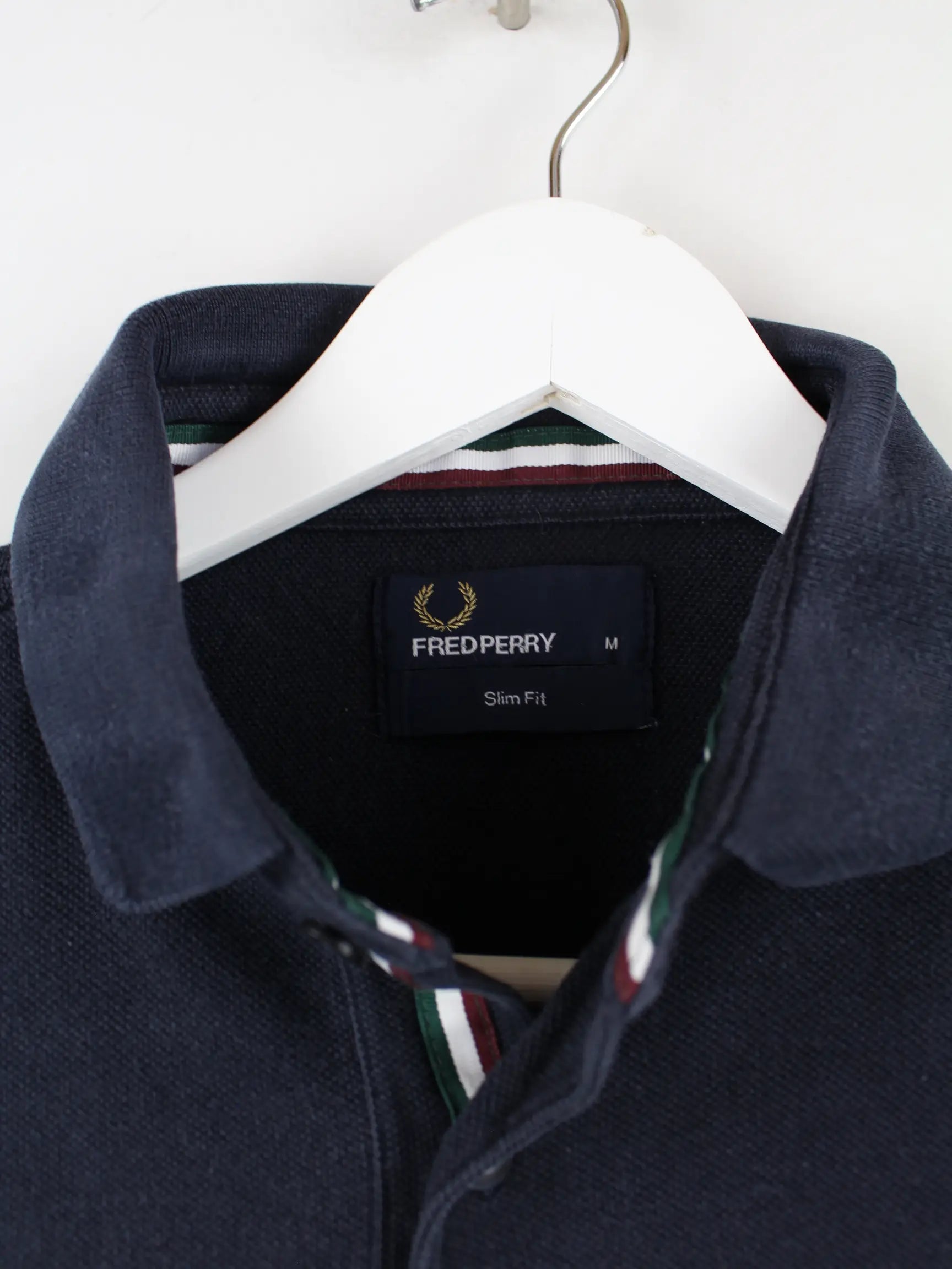 Poloshirt der Marke Fred Perry in Größe M. Es ist aus Baumwolle gefertigt und in Blau bei uns vorrätig.