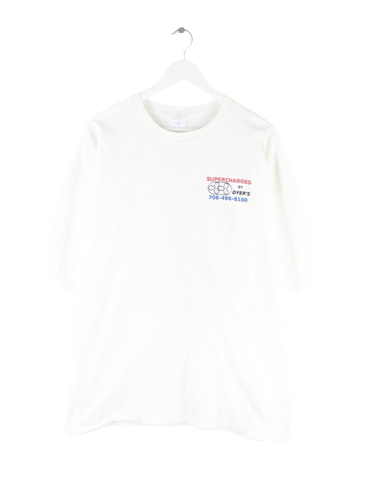 T-Shirt der Brand Gildan in Größe XXL. Es ist aus Baumwolle angefertigt und in Weiß bei uns vorrätig. Mit schickem Racing Print.