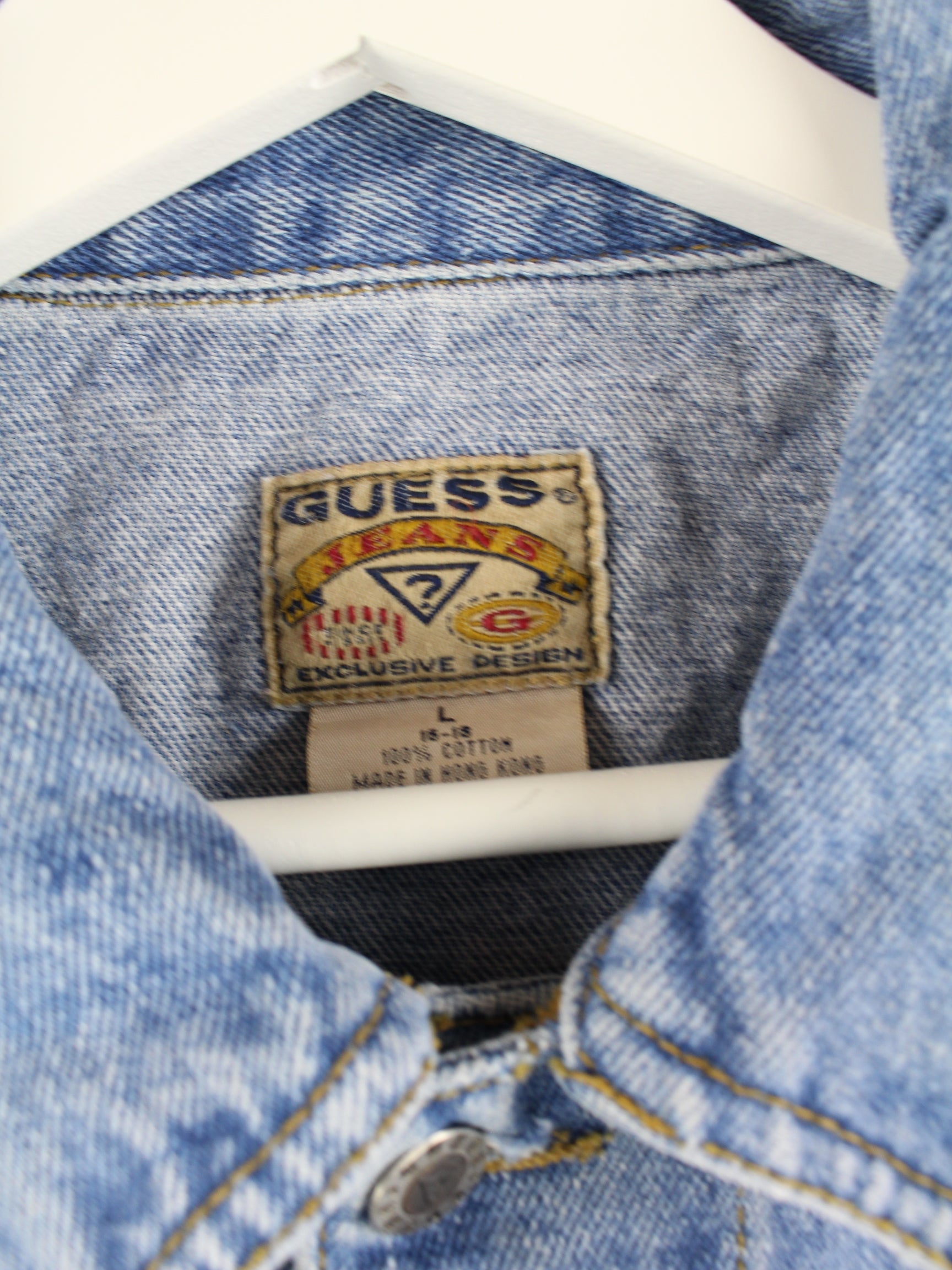 Guess Damen 90s Vintage Jeans Jacke Blau L
