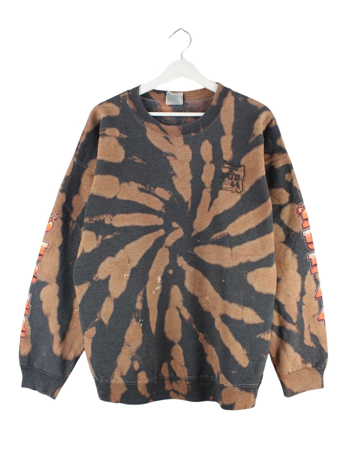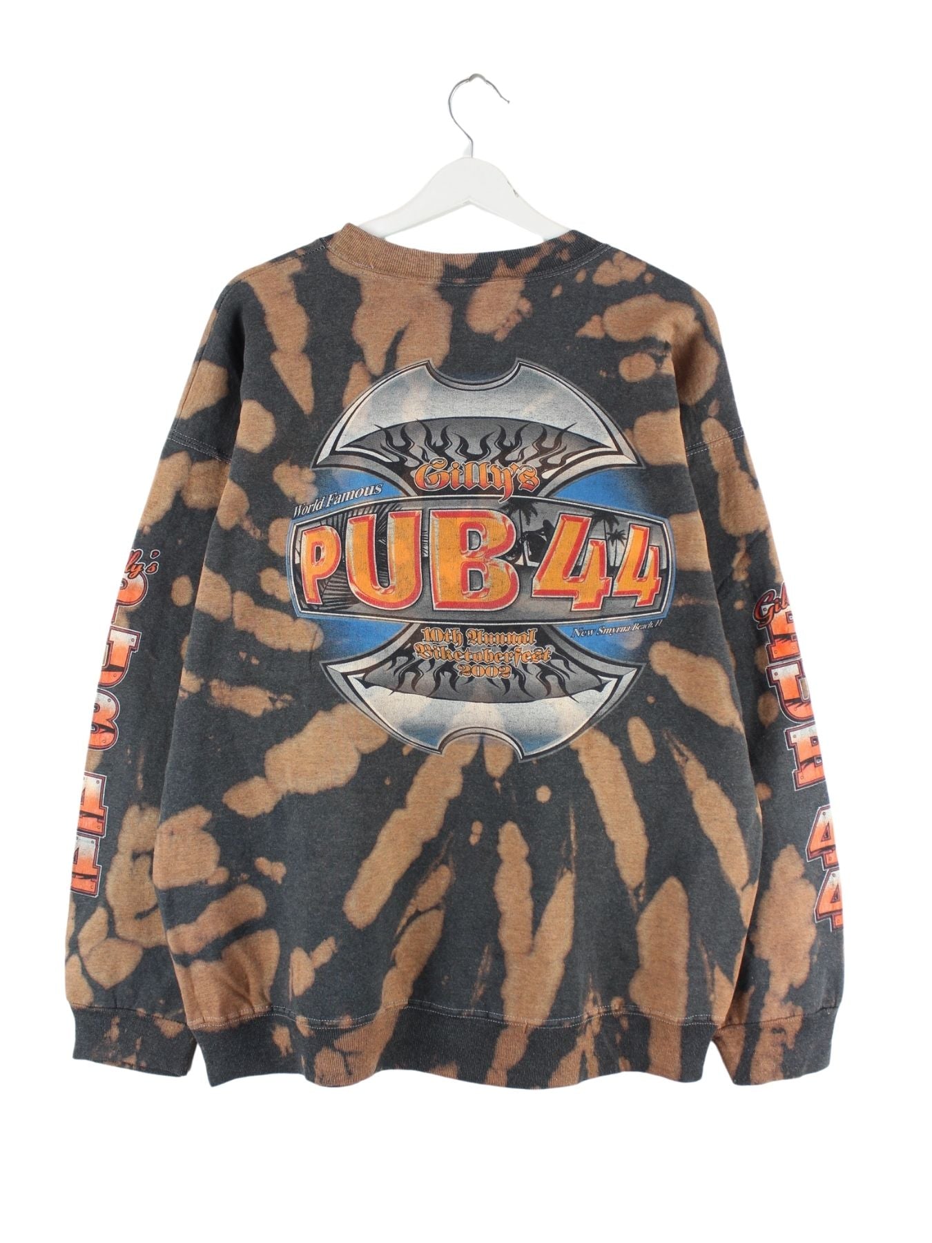 Hanes 90s Vintage Biker Pub Print Rework Tie Dye Sweater Grau XL