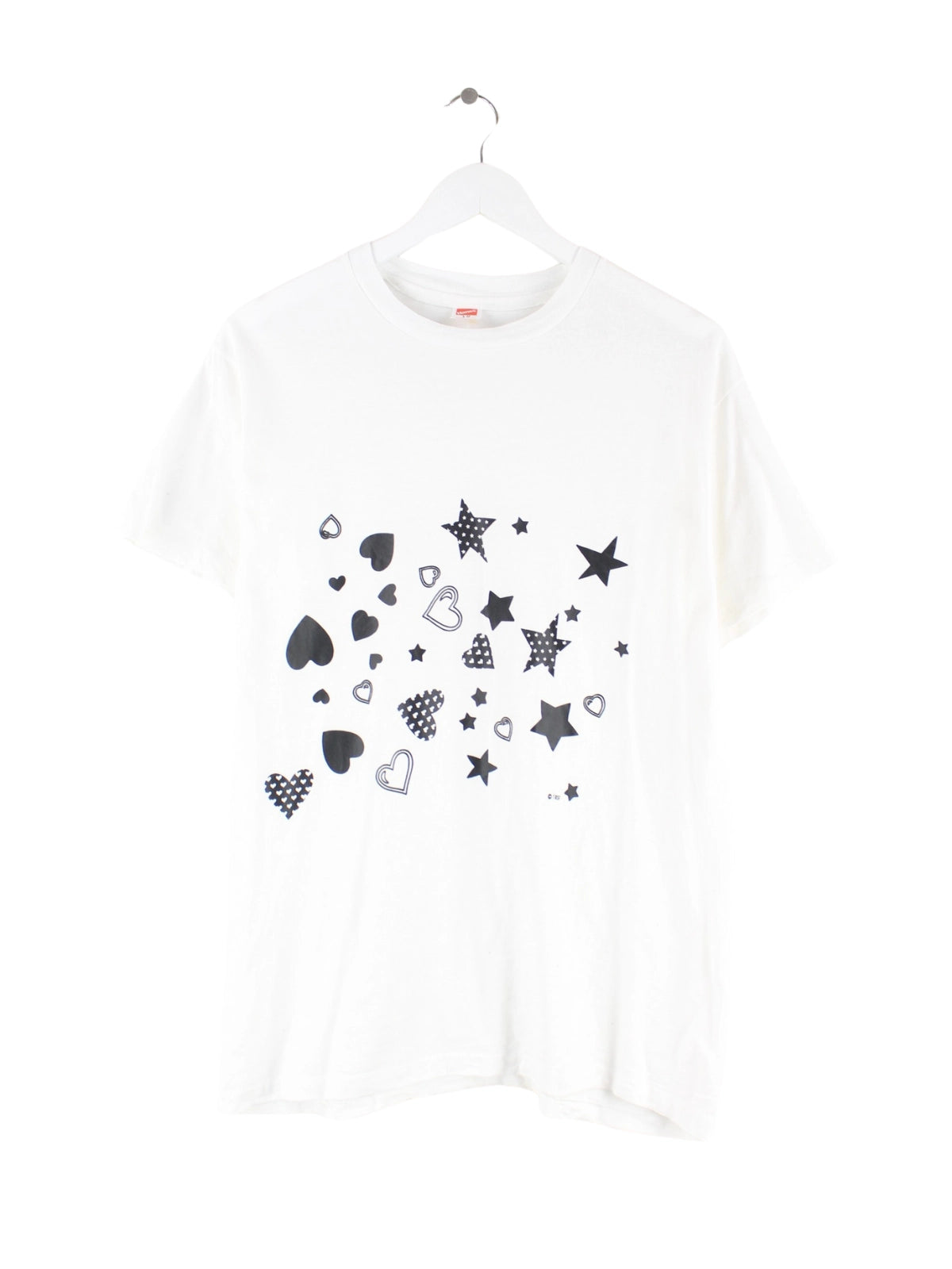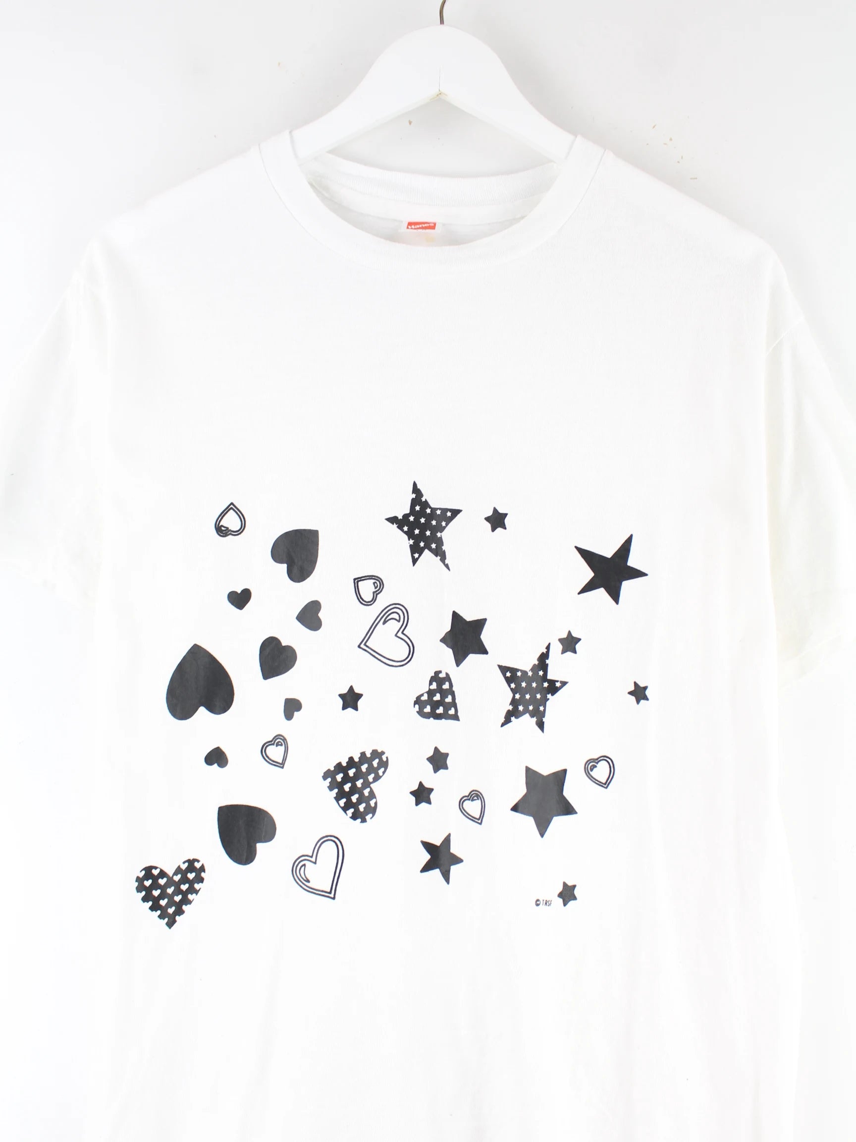 Hanes 90s Vintage Hearts Print Single Stitch T-Shirt Weiß L