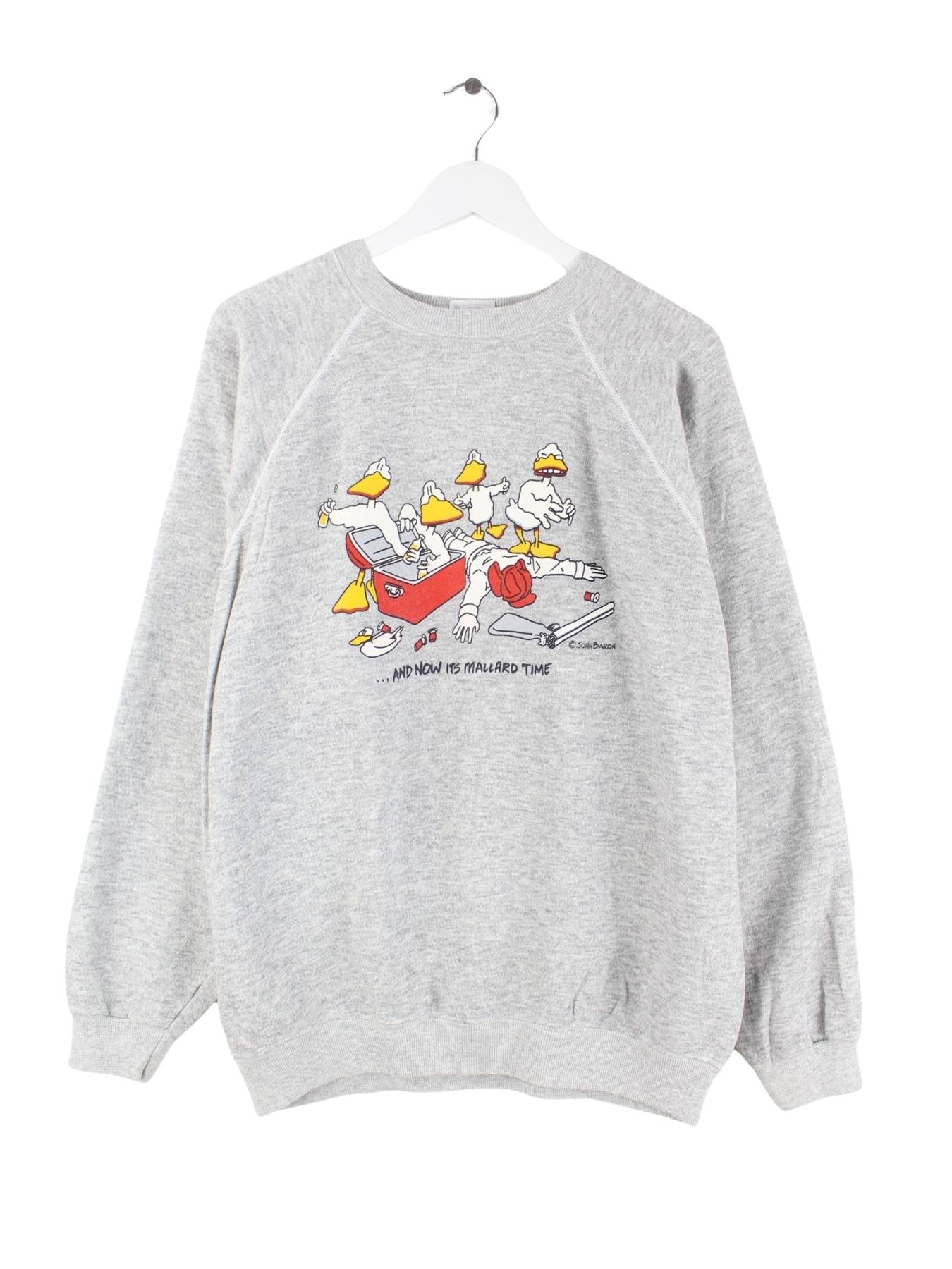 Sweater aus dem Hause Hanes in Größe XL aus den 90'ern. Er ist aus einer Baumwollmischung hergestellt und in Grau im Angebot. Mit chiquem Mallard Print.