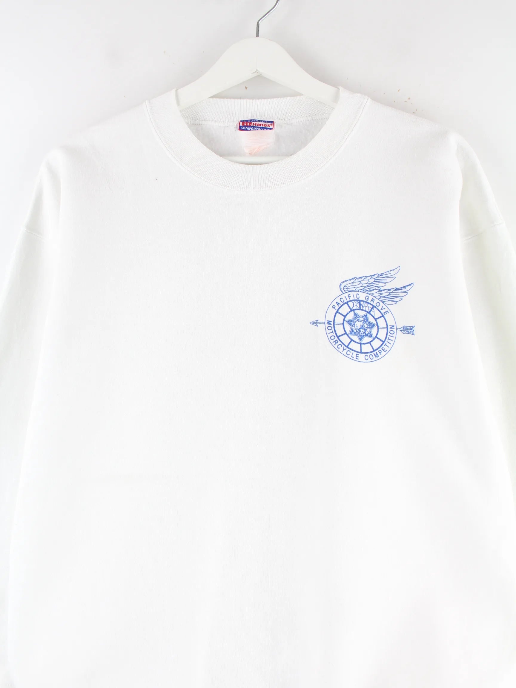 Hanes 90s Vintage Police Motorcycle Competition Print Sweater Weiß L
