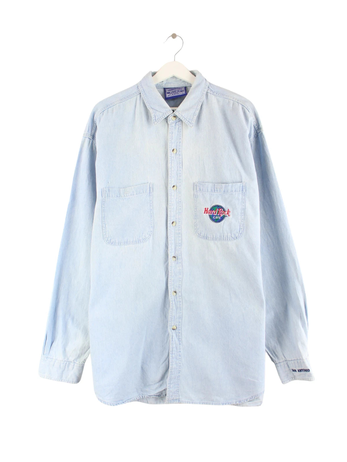 Hard Rock Cafe 90s Vintage Embroidered Hemd Blau XL