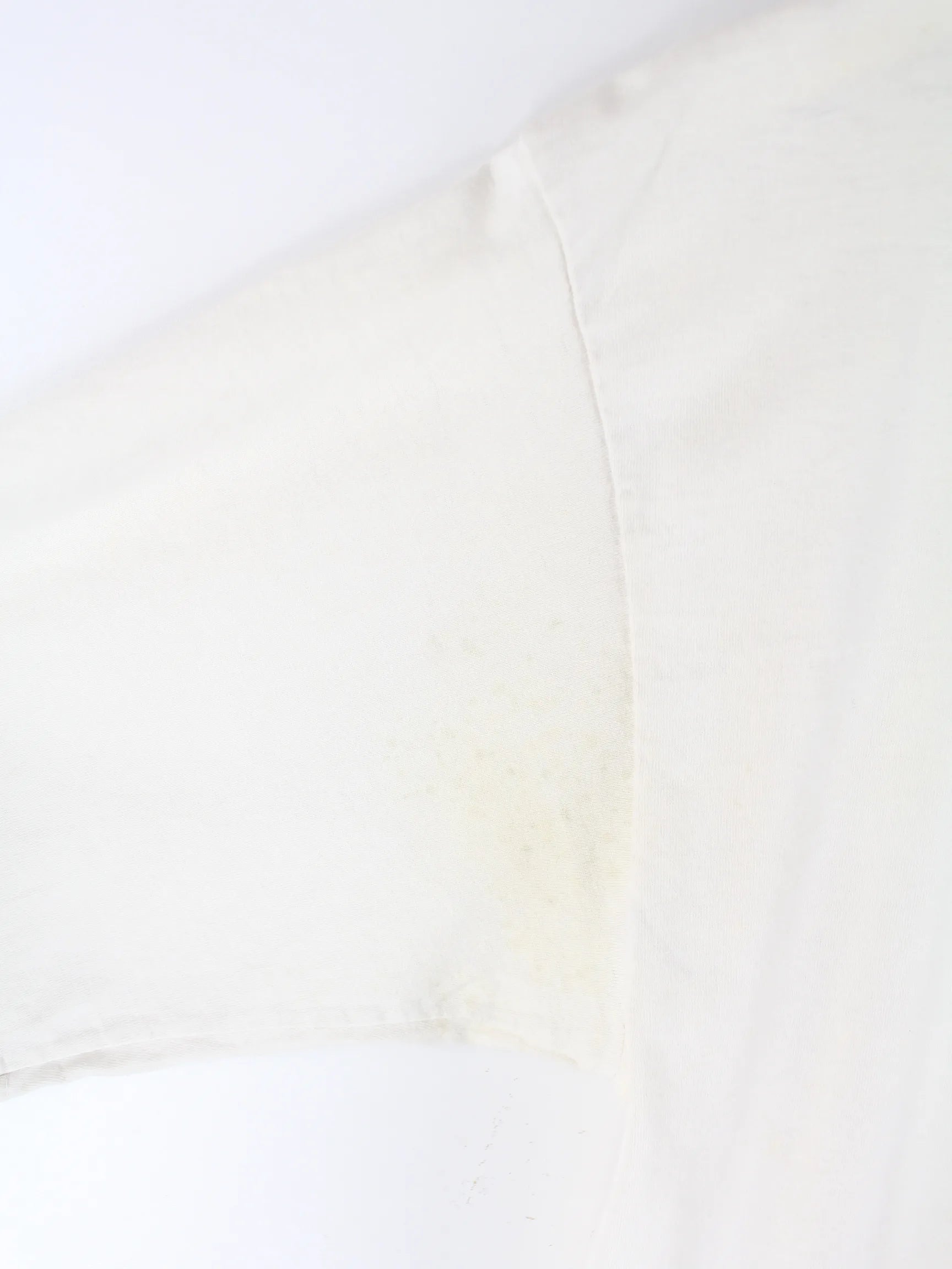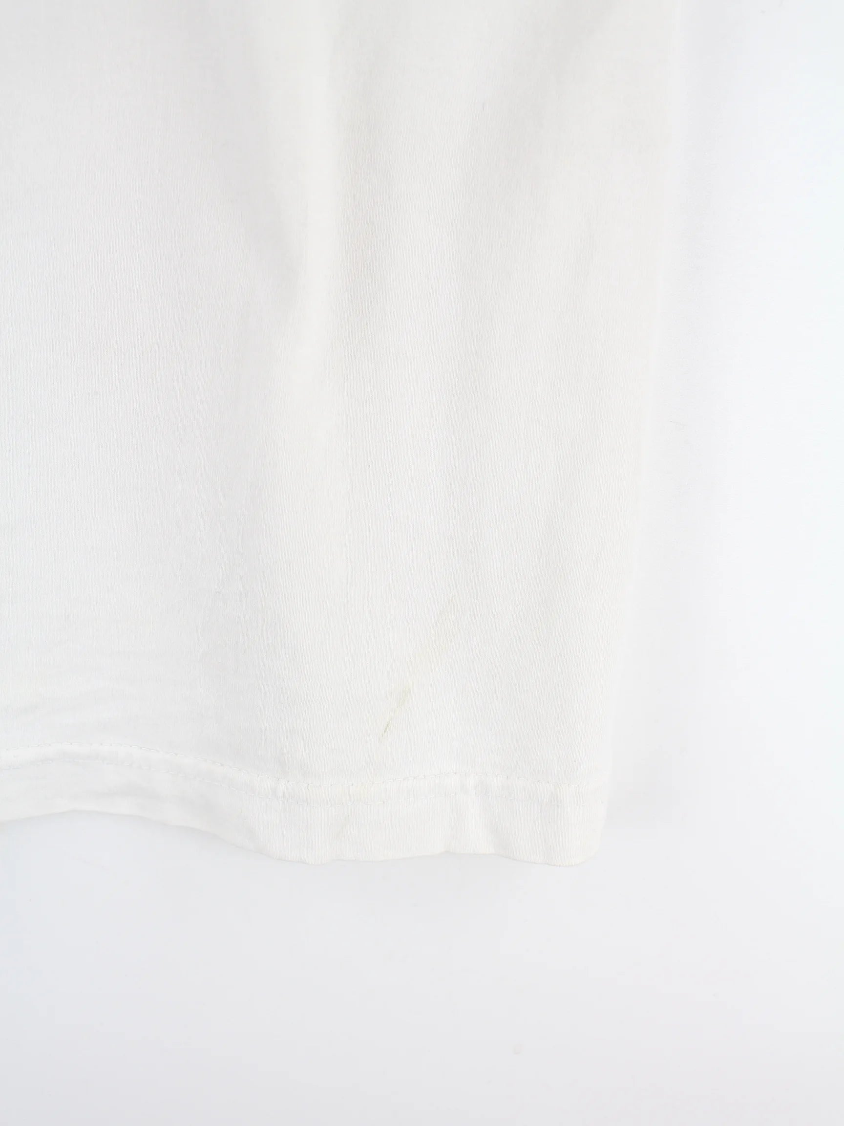 Weißes T-Shirt der Brand Hard Rock Cafe aus den 90'ern in Größe L. Es ist aus Baumwolle angefertigt. Den Zustand würden wir als 'In Ordnung' bezeichnen (vergl. Bilder).Mit tollem Original Print.