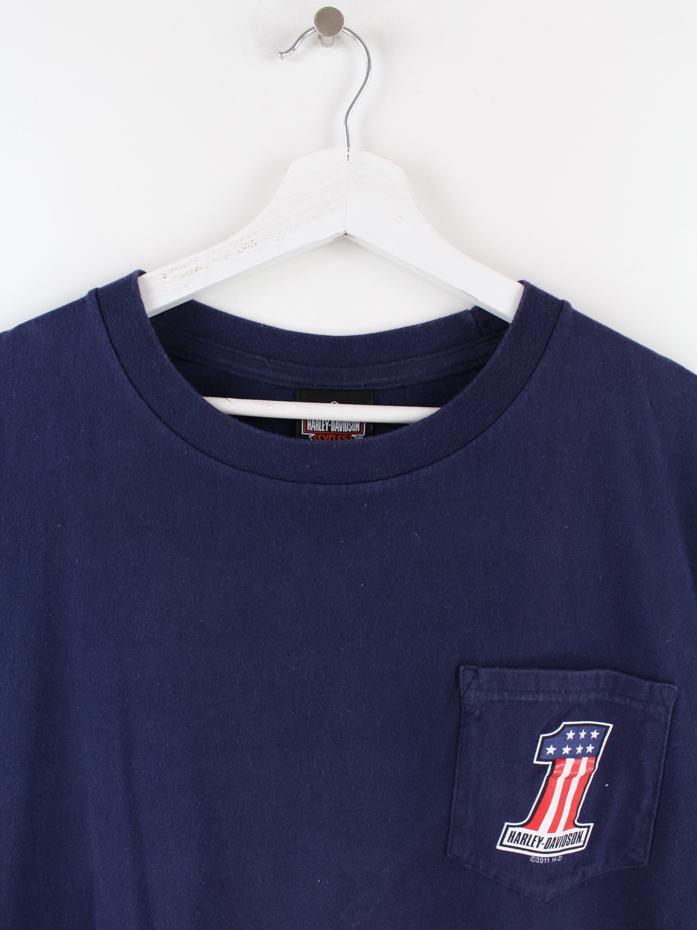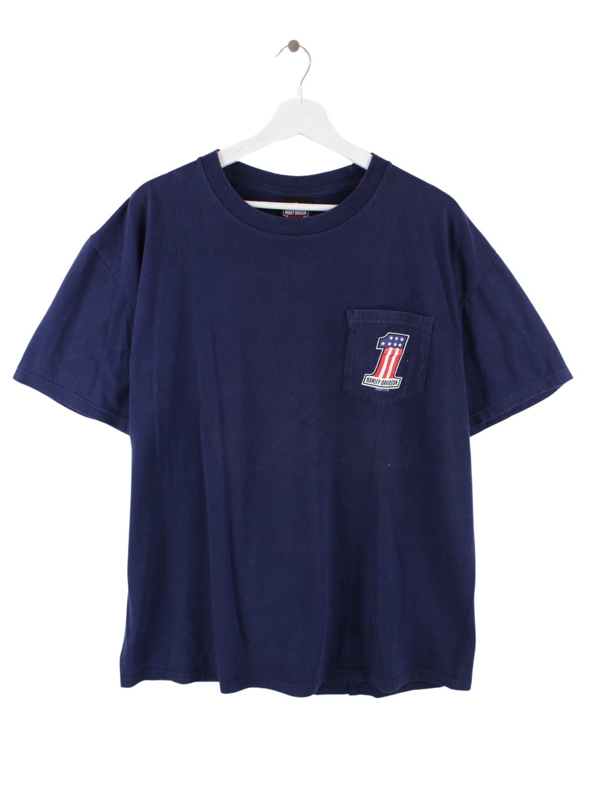 Blaues Harley Davidson T-Shirt mit großem Backprint.