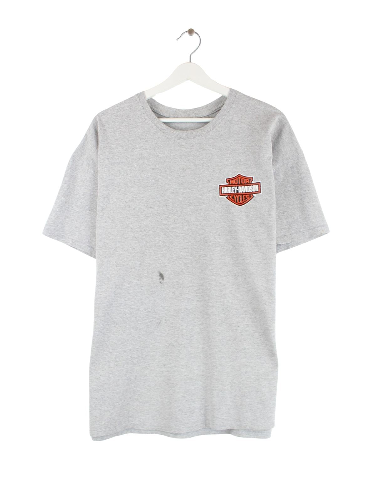 T-Shirt vom Brand Harley Davidson in Größe XL. Es ist aus Baumwolle angefertigt und in Grau zu haben. Mit schönem Print.