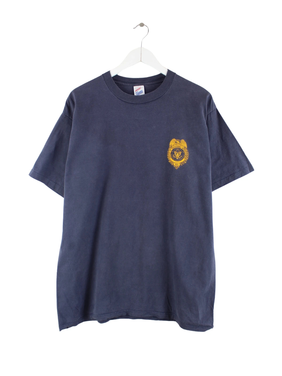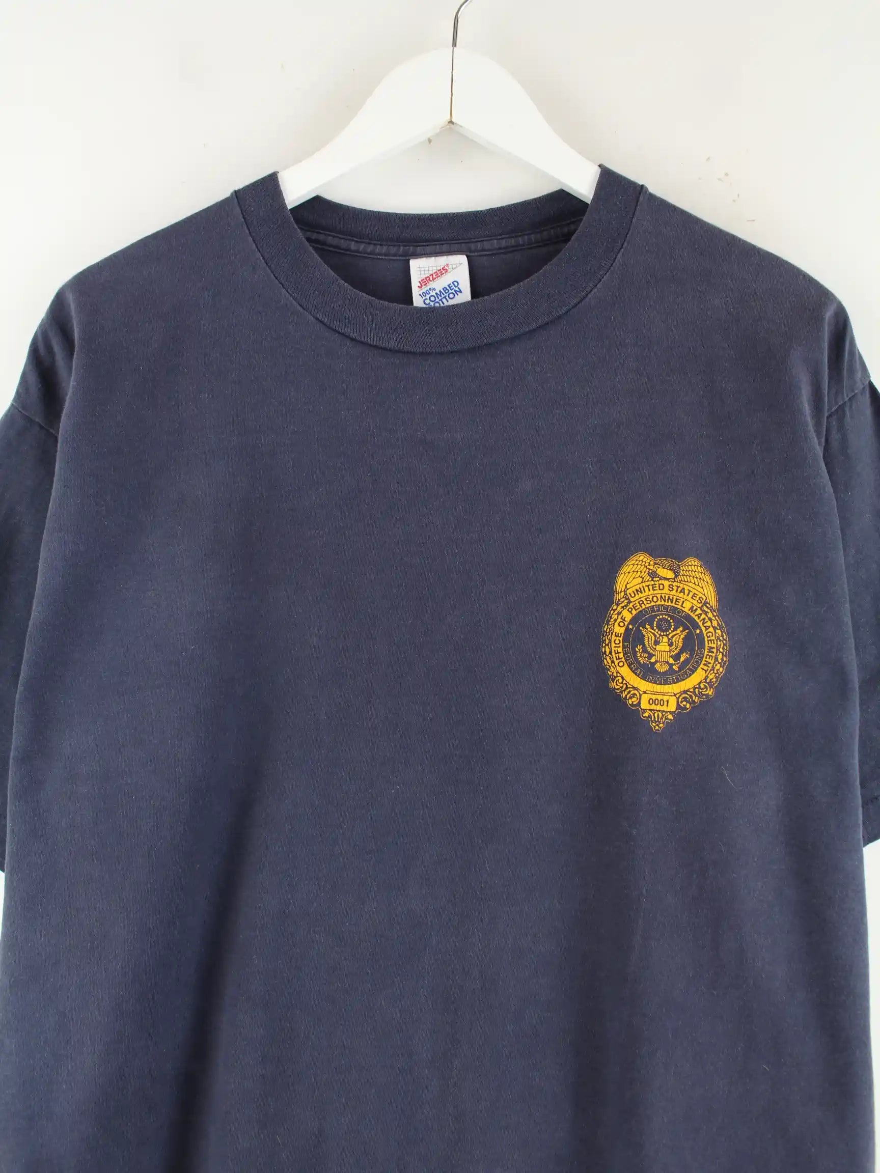 Jerzees 90s Vintage USA Print Single Stitch T-Shirt Blau XL