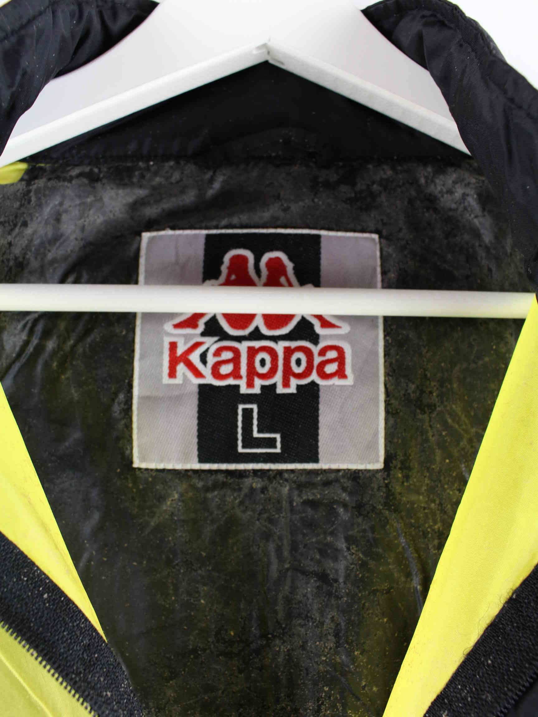 Gelbe Trainingsjacke der Marke Kappa aus den 90'ern in Größe XL. Sie ist aus Synthetik gefertigt. Den Zustand würden wir als 'In Ordnung' bezeichnen (vergl. Bilder).