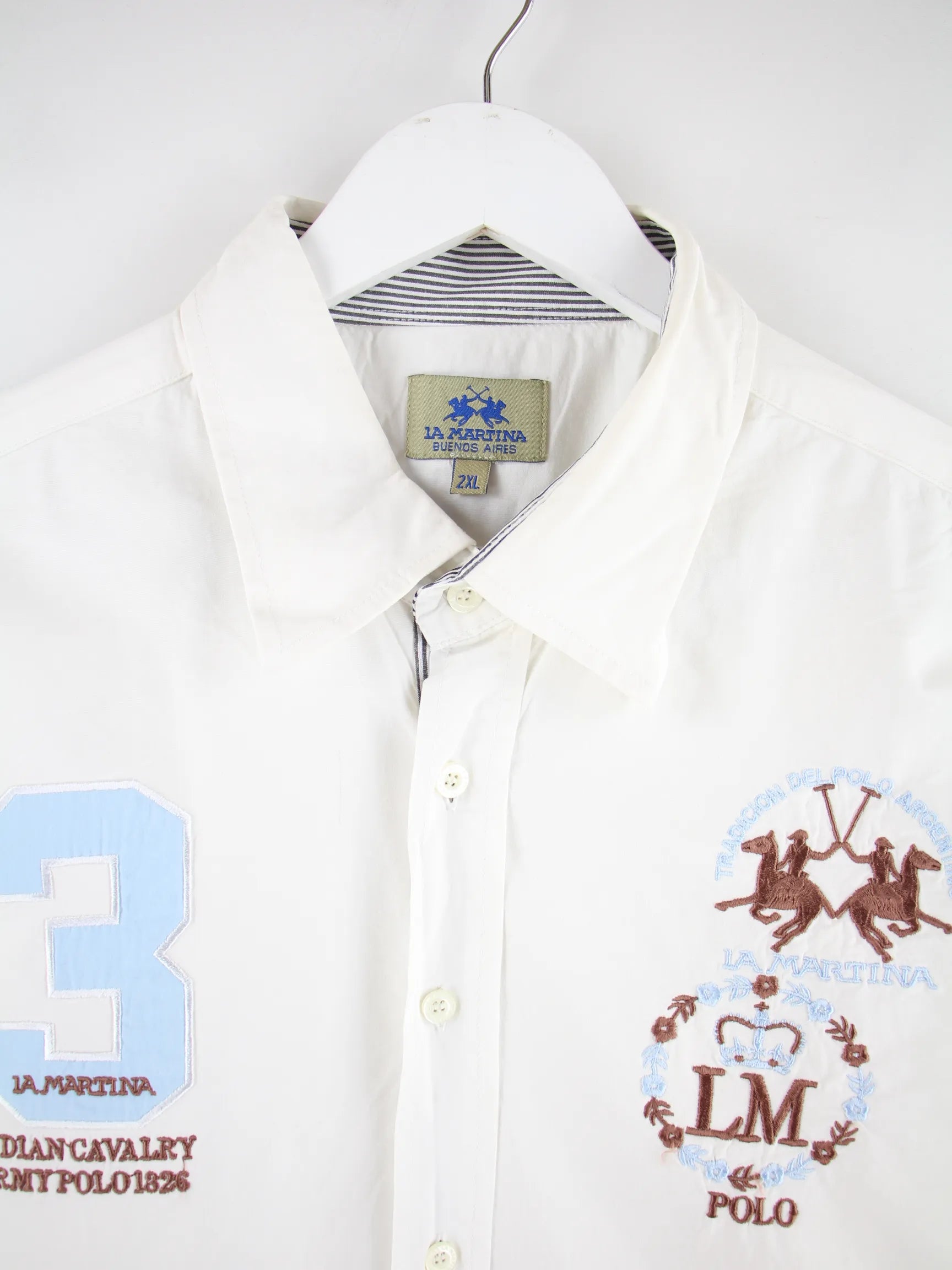 Freizeit Hemd vom Brand La Martina in Größe XXL aus Anfang der 2000'er. Es ist aus Baumwolle und in Weiß vorrätig.