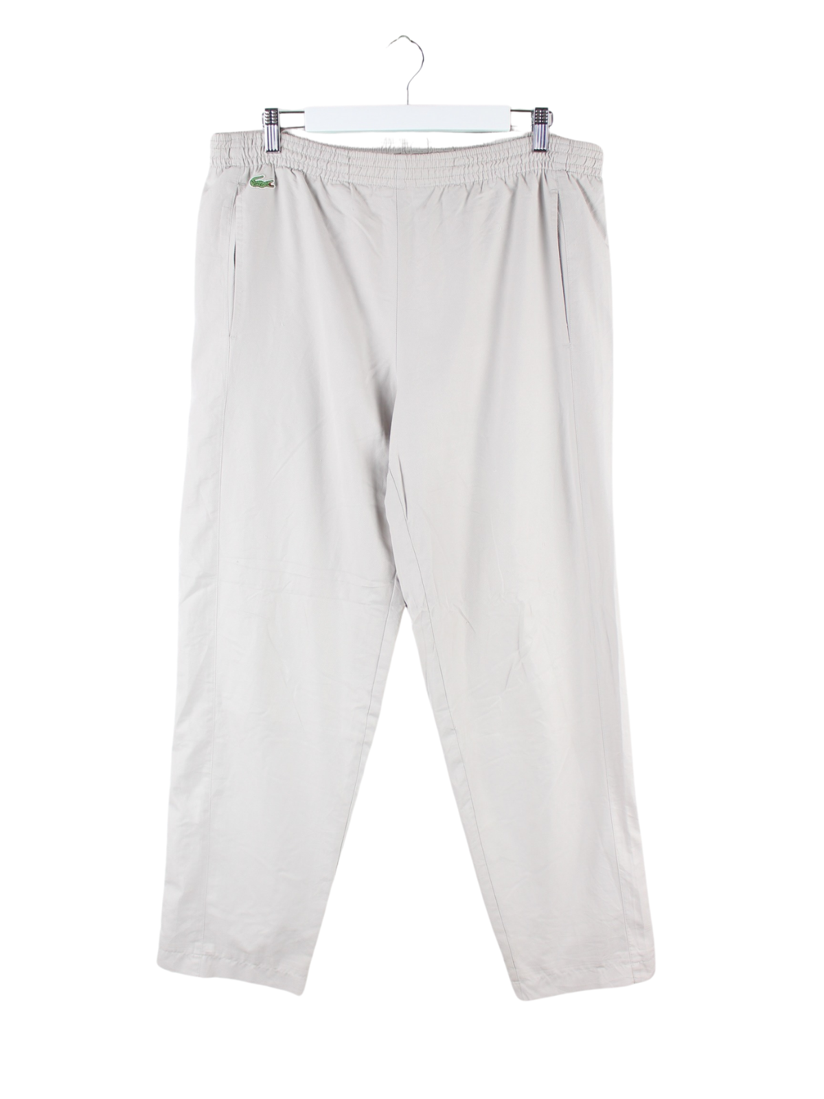 Track Pants vom Brand Lacoste in Größe XL aus den 90'ern. Sie sind aus Synthetik gemacht und in Grau vorrätig.