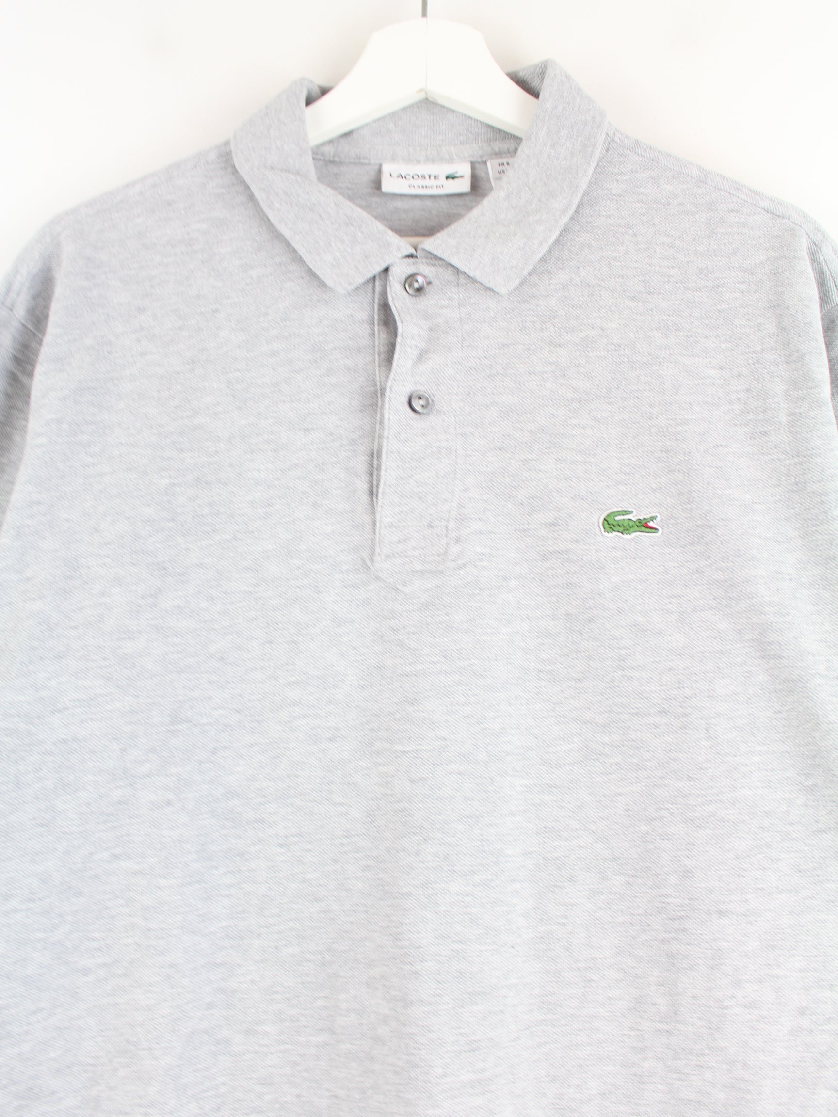 Graues Poloshirt aus dem Hause Lacoste in Größe XL. Es ist aus Baumwolle hergestellt und in sehr gutem Zustand im Bestand.