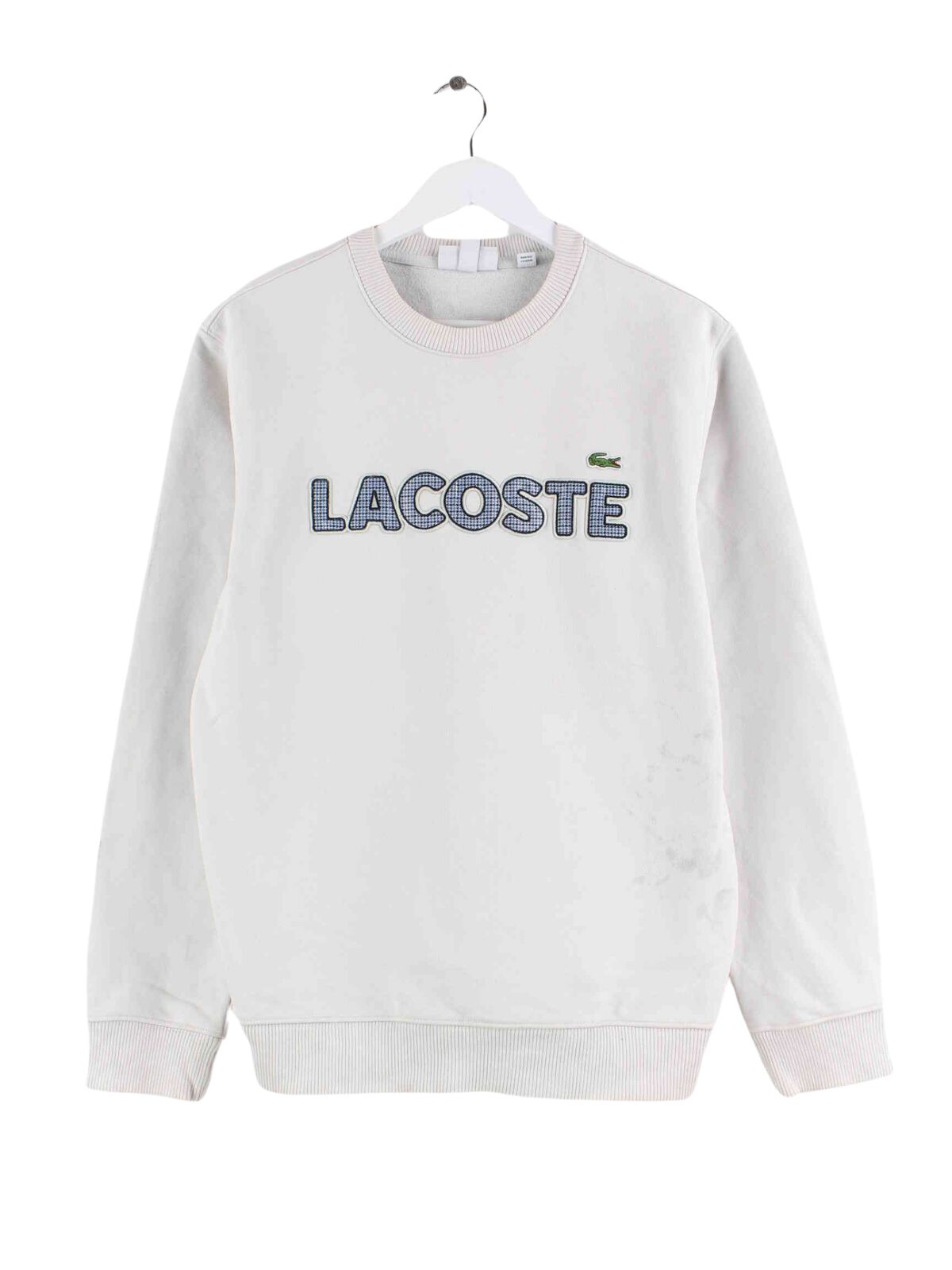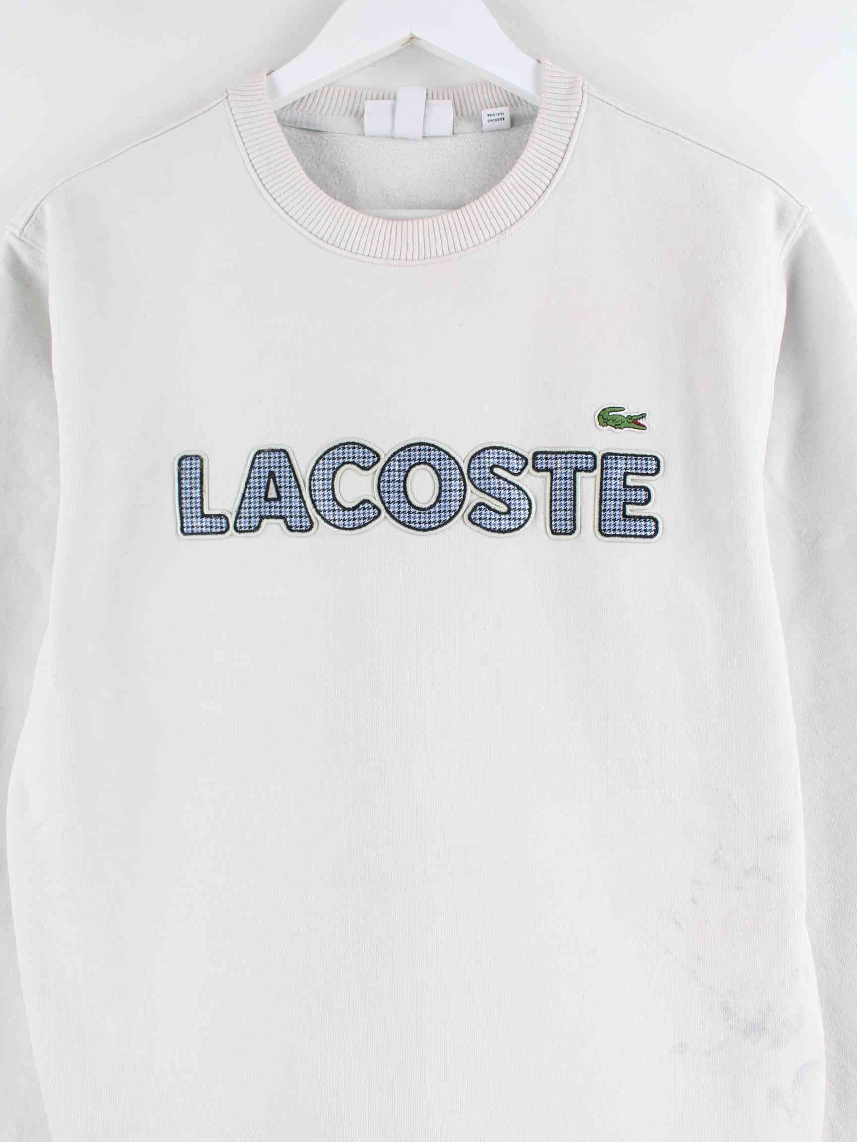 Sweater vom Brand Lacoste mit gestickten Motiven in Größe M. Er ist aus einer Baumwollmischung angefertigt und in Weiß im Angebot.