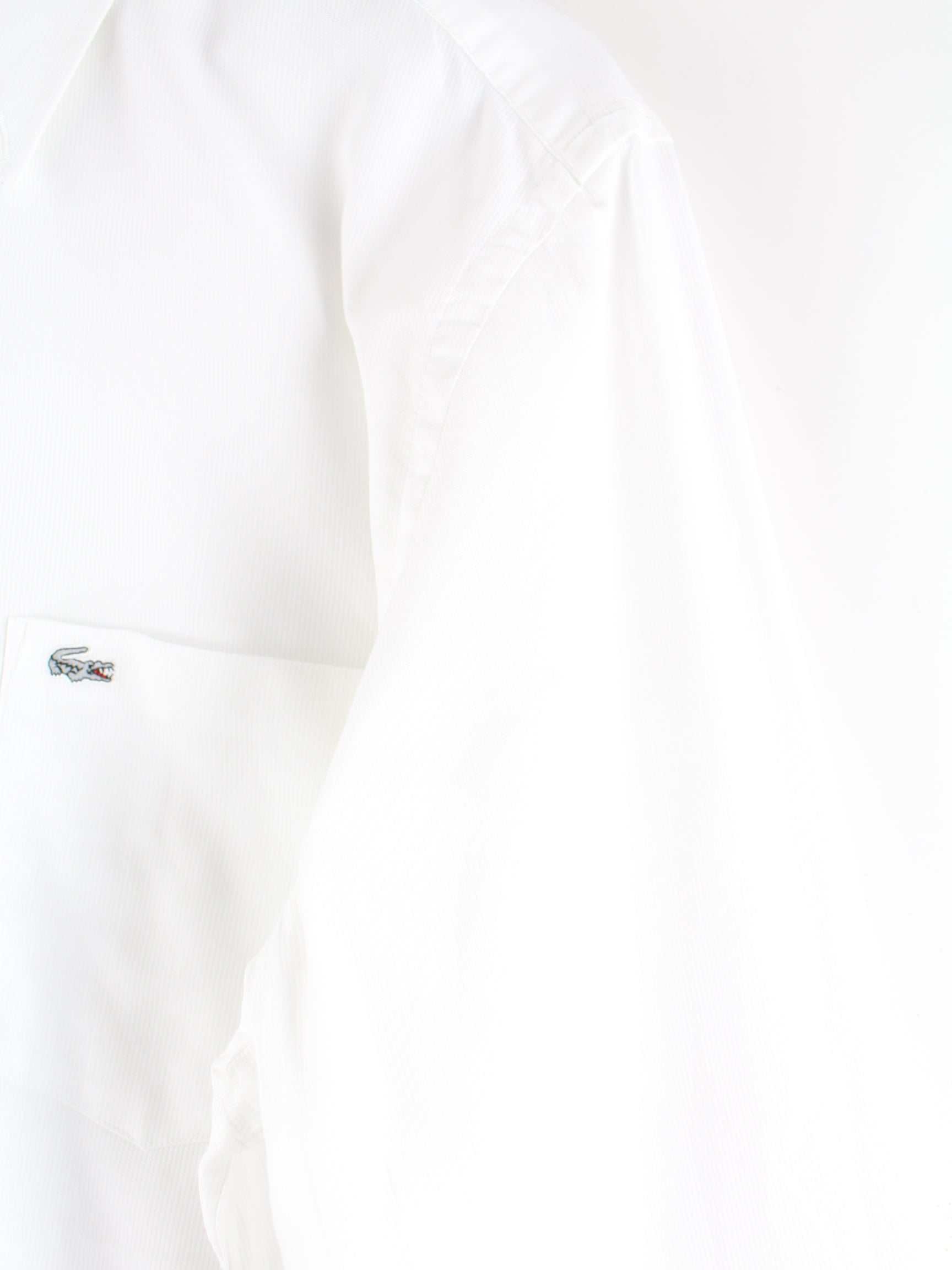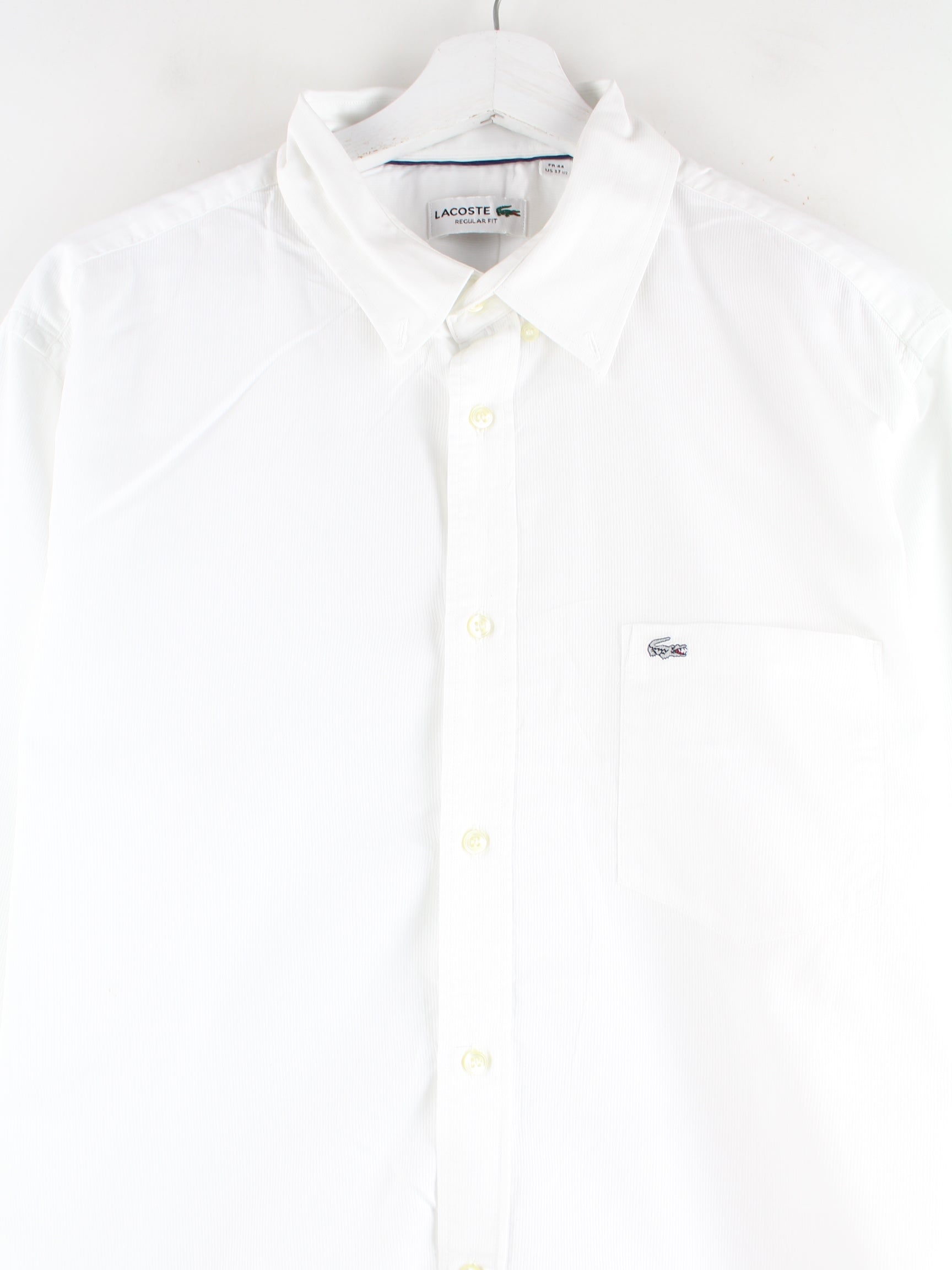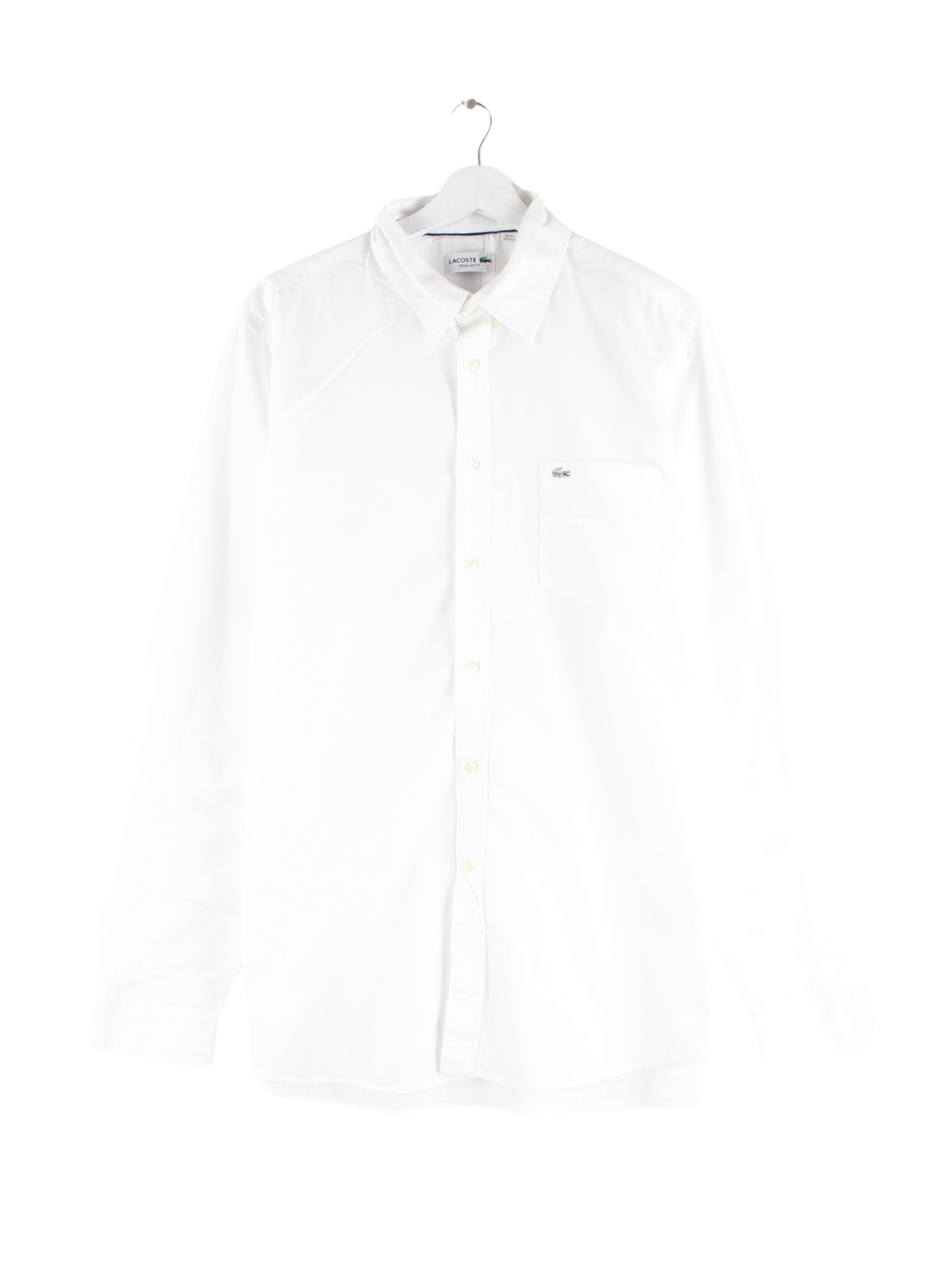 Weißes Hemd des Labels Lacoste in Größe L. Es ist aus Baumwolle angefertigt und in sehr gutem Zustand auf Lager.