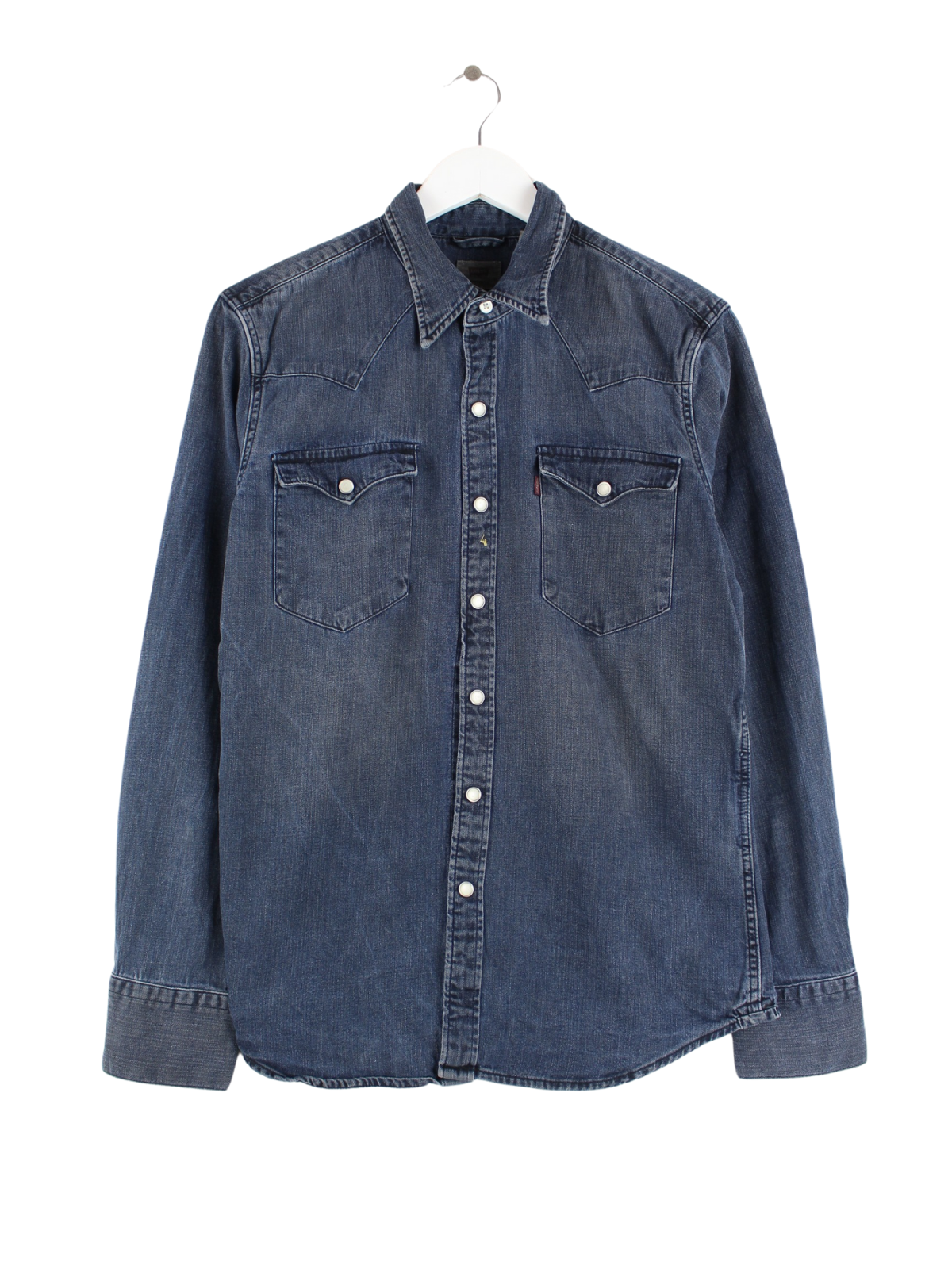 Freizeit Hemd vom Label Levi's in Größe S. Es ist aus Baumwolle und in Blau vorrätig.