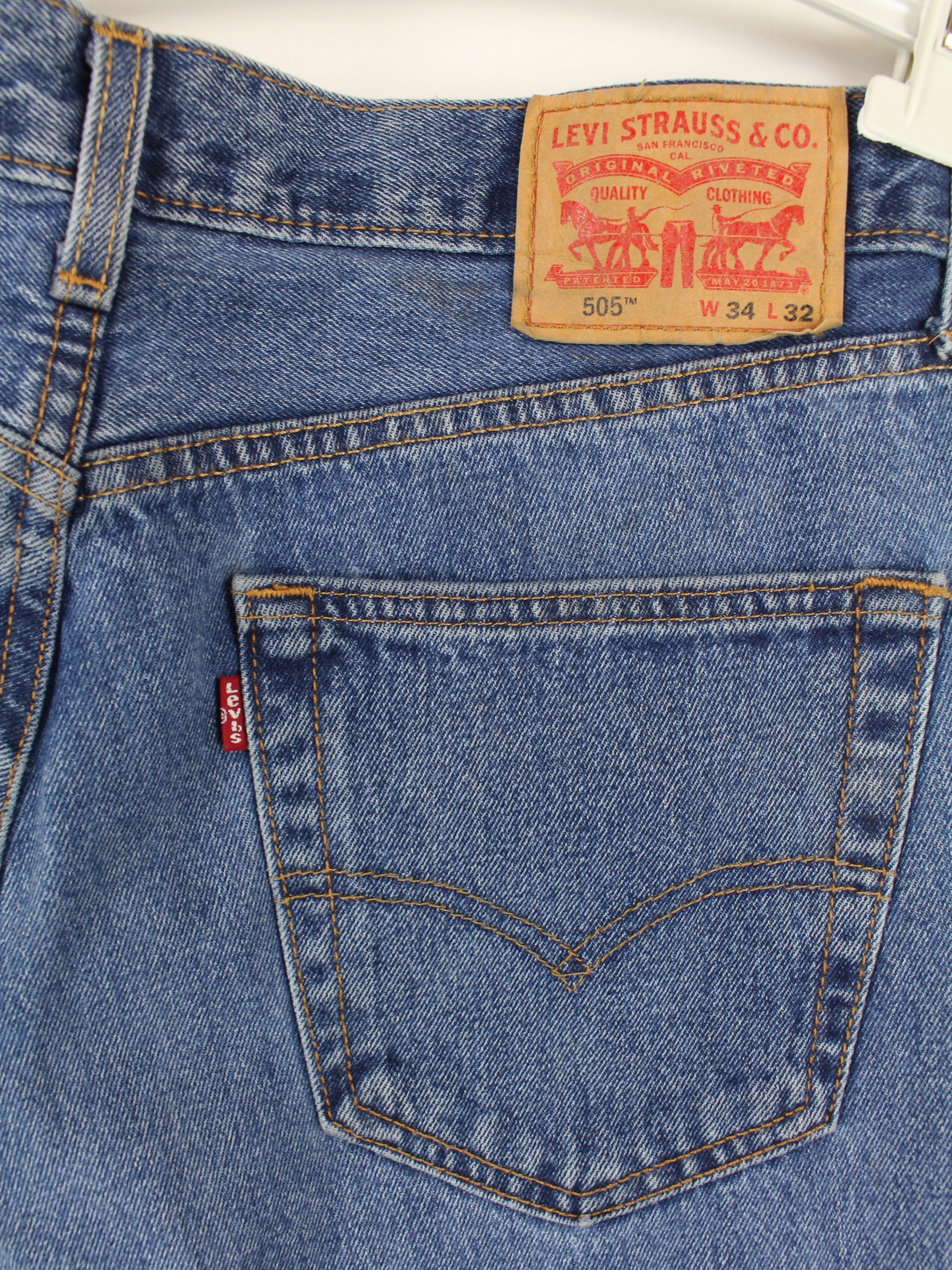 Blaue Vintage Levi's 505 Jeans Hose in Größe W34 L32.