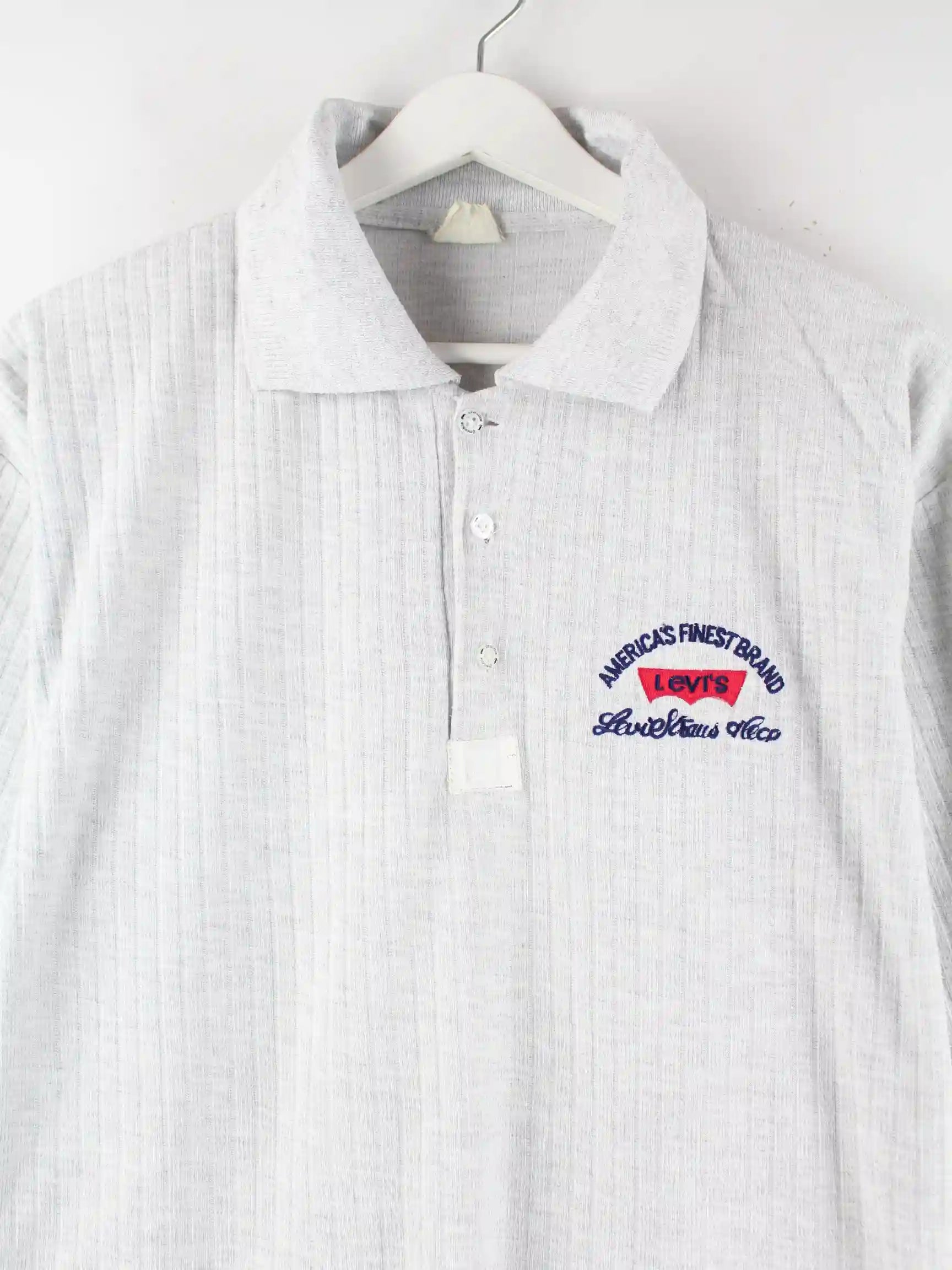 Poloshirt von Levi's mit Stickereien in Größe L aus den 90'ern. Es ist aus Baumwolle produziert und in Grau zu bekommen.