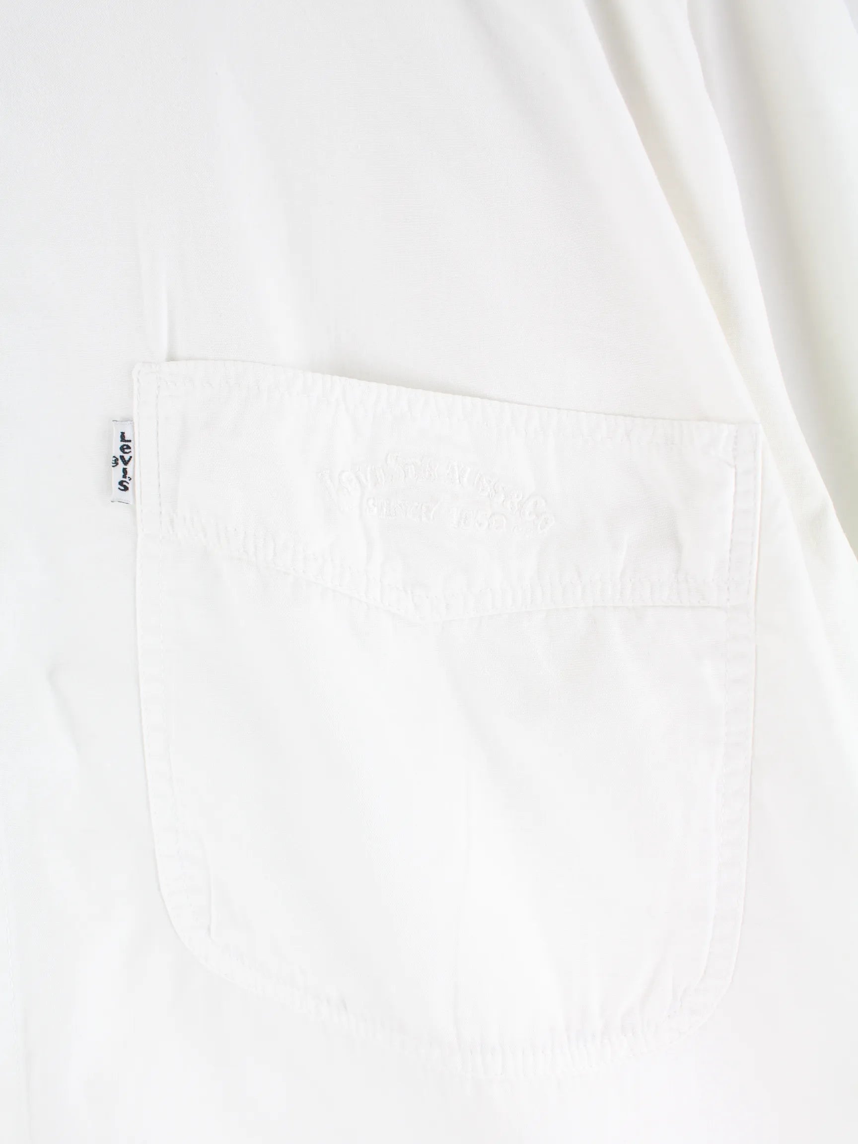 Hemd der Marke Levi's in Größe L aus den 90'ern. Es ist aus Baumwolle gefertigt und in Weiß zu haben.