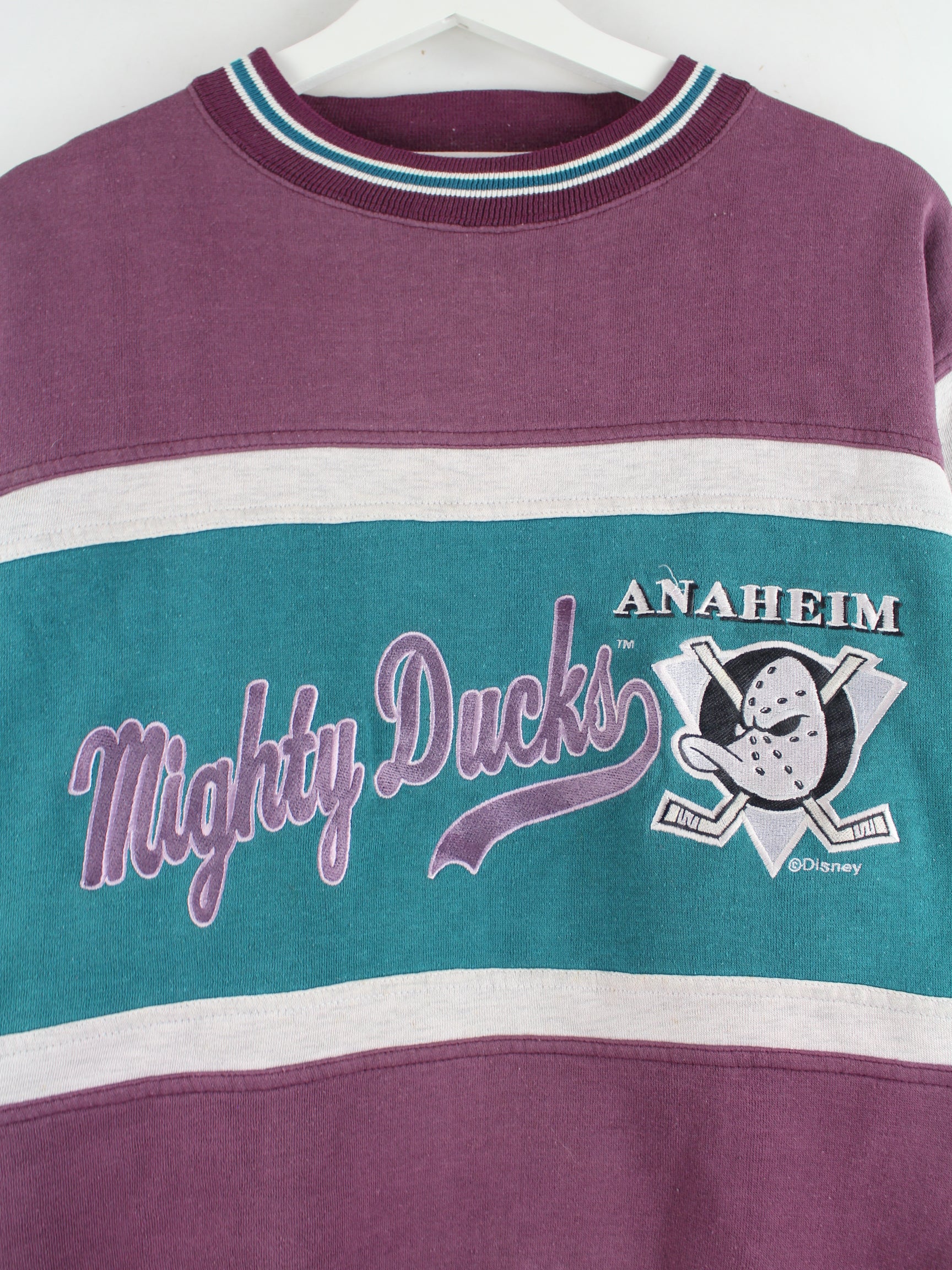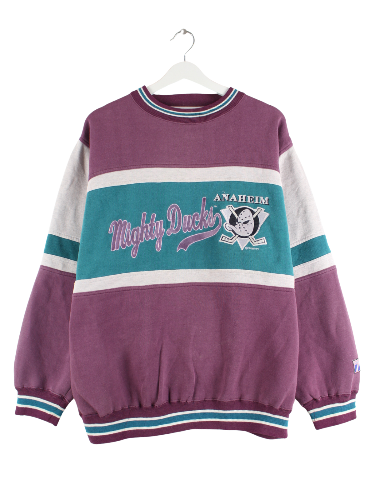 Logo 7 90s Vintage Mighty Ducks Anaheim Embroidered Sweater Lila XL