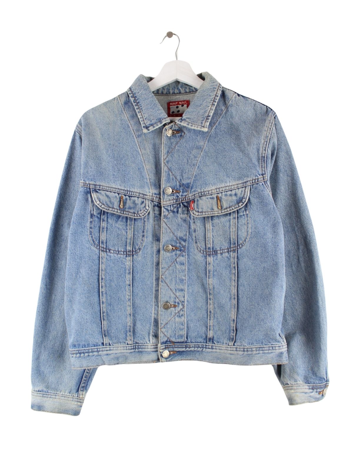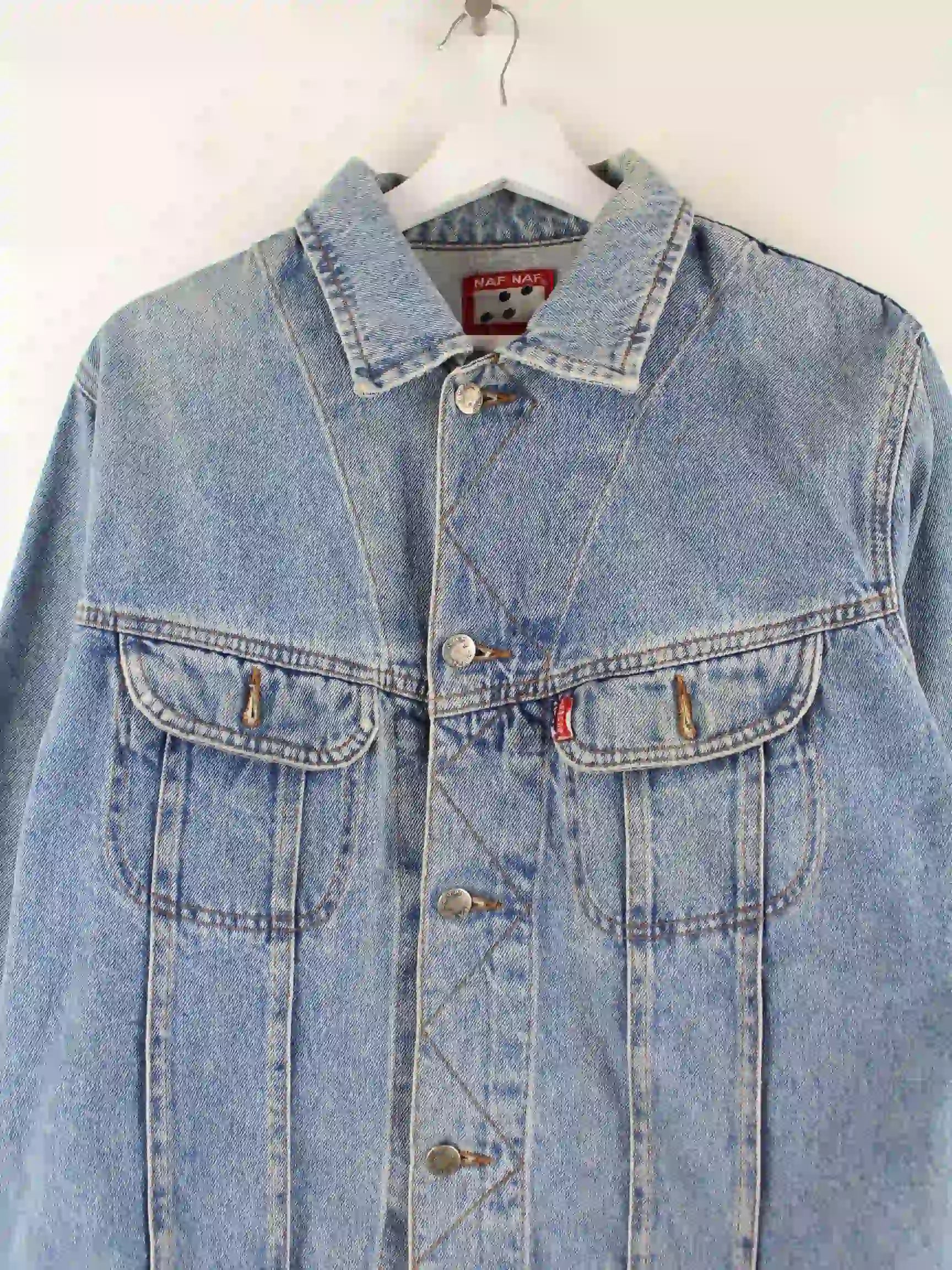 Naf Naf Damen 80s Vintage Jeans Jacke Blau L