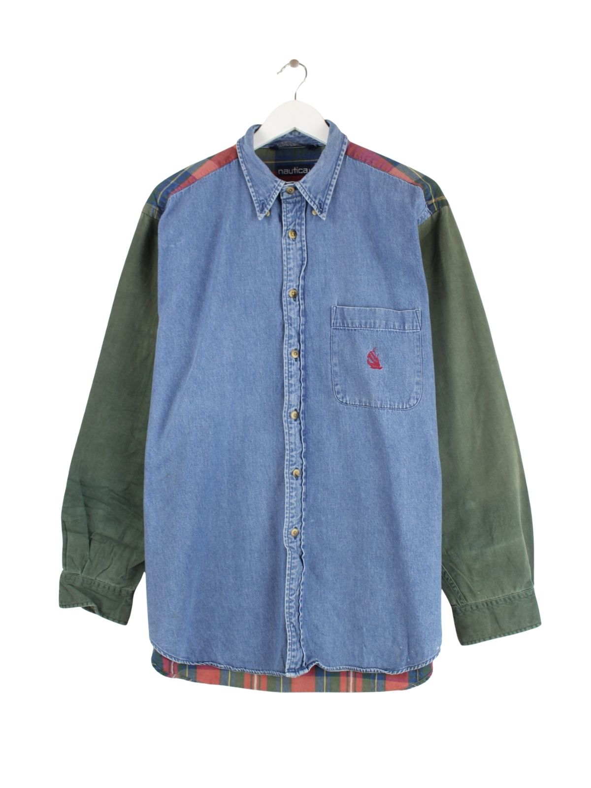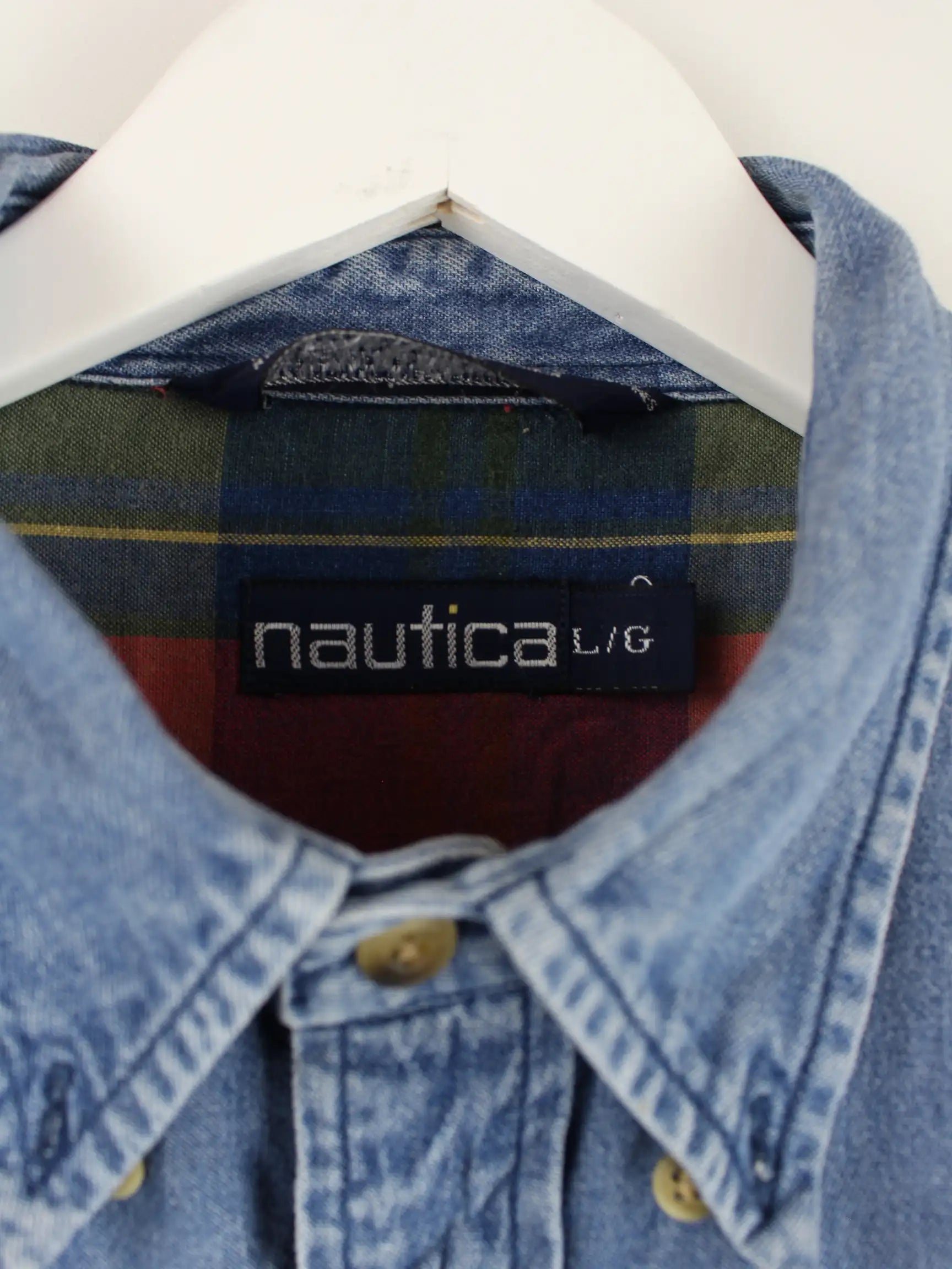 Blaues Freizeit Hemd des Labels Nautica aus den 90'ern in Größe L. Es ist aus Baumwolle und in gutem Zustand lieferbar.
