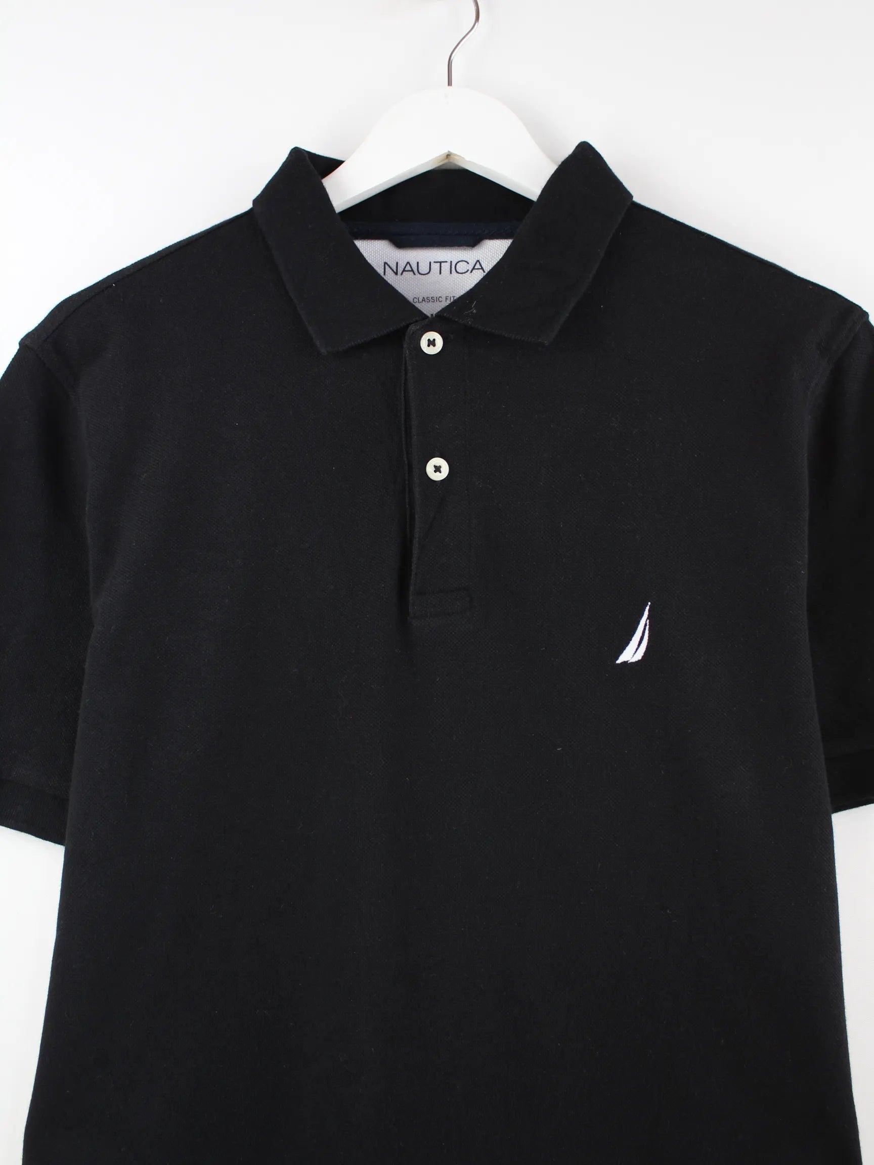 Schwarzes Poloshirt der Marke Nautica in Größe M. Es ist aus Baumwolle produziert und in sehr gutem Zustand zu bekommen.