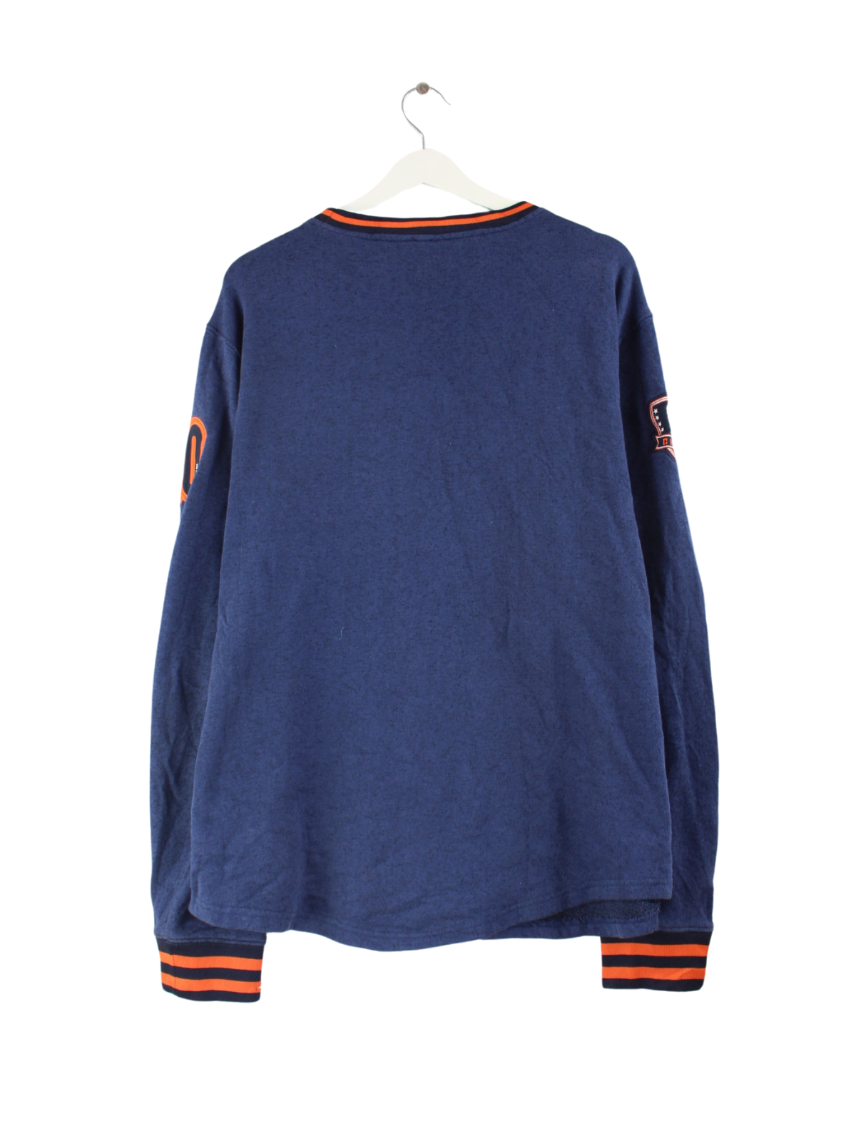 Sweater der Brand NFL mit Stick in Größe XL. Er ist aus einer Baumwollmischung produziert und in Blau bei uns vorrätig.