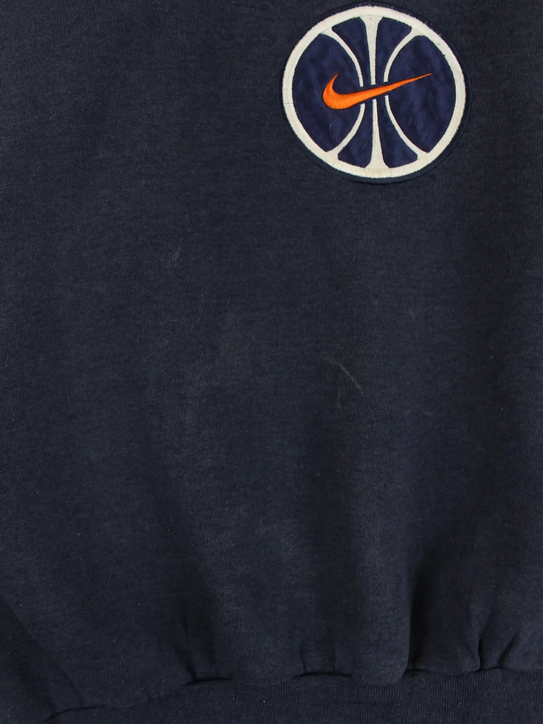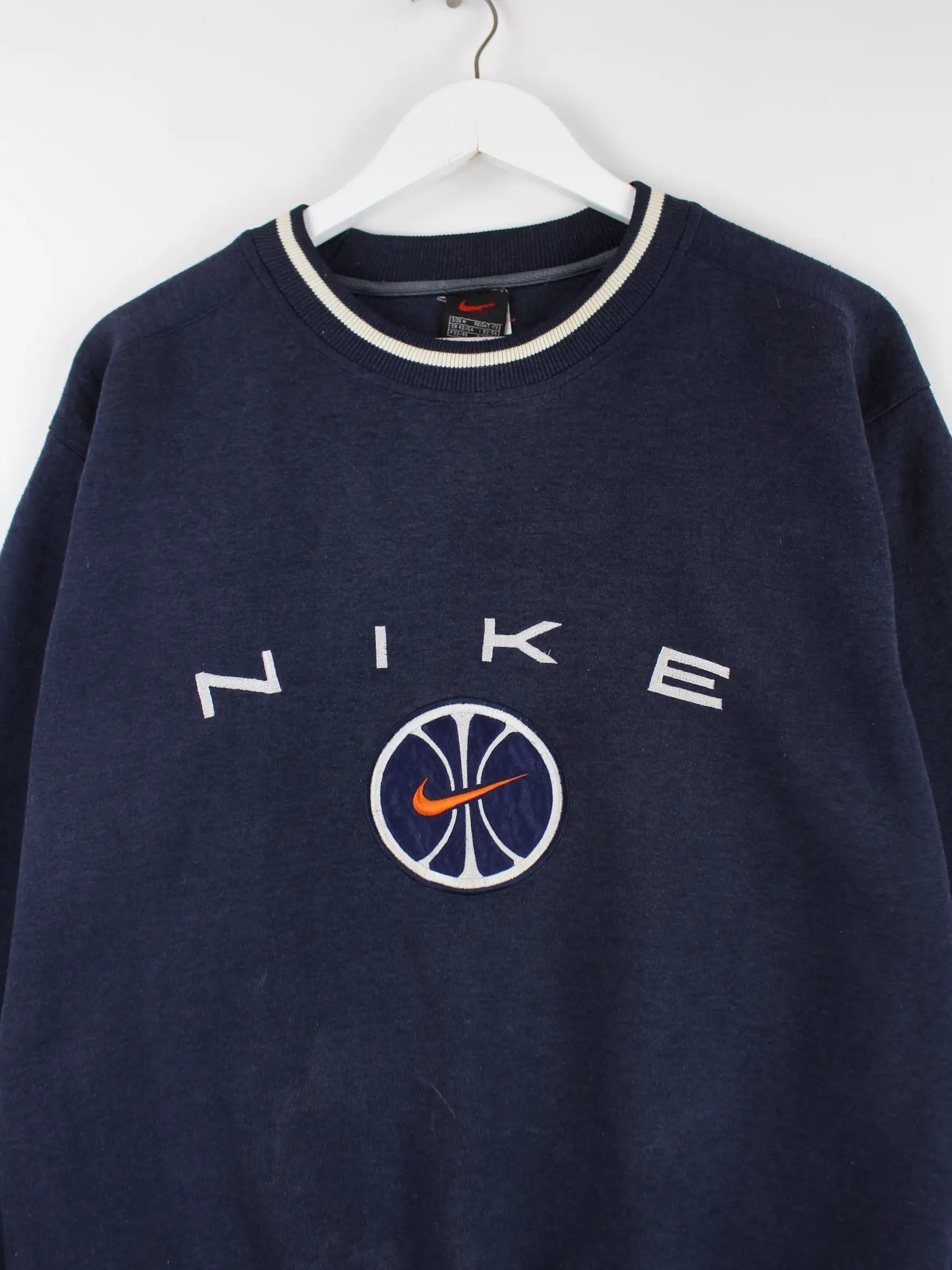 Blauer Sweater vom Brand Nike in Größe M. Er ist aus einer Baumwollmischung gefertigt. Den Zustand würden wir als 'In Ordnung' bezeichnen (vergl. Bilder).