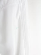 Weiße Trainingsjacke mit gesticktem Logo des Labels Nike aus den 90'ern in Größe XL. Sie ist aus Synthetik hergestellt und in gutem Zustand bei uns zu bekommen.