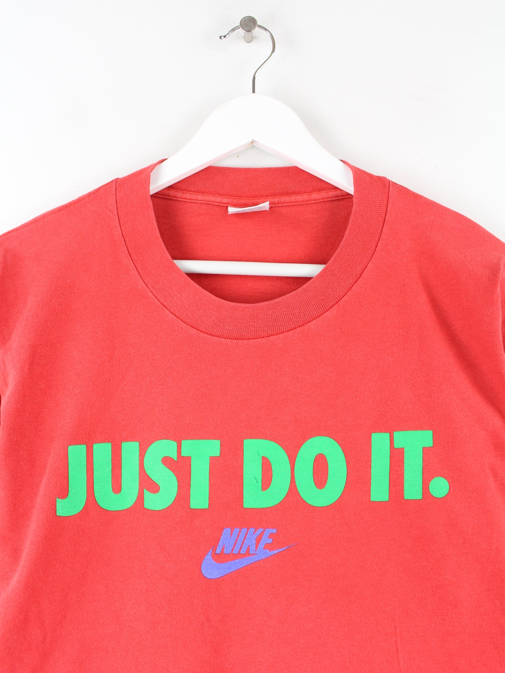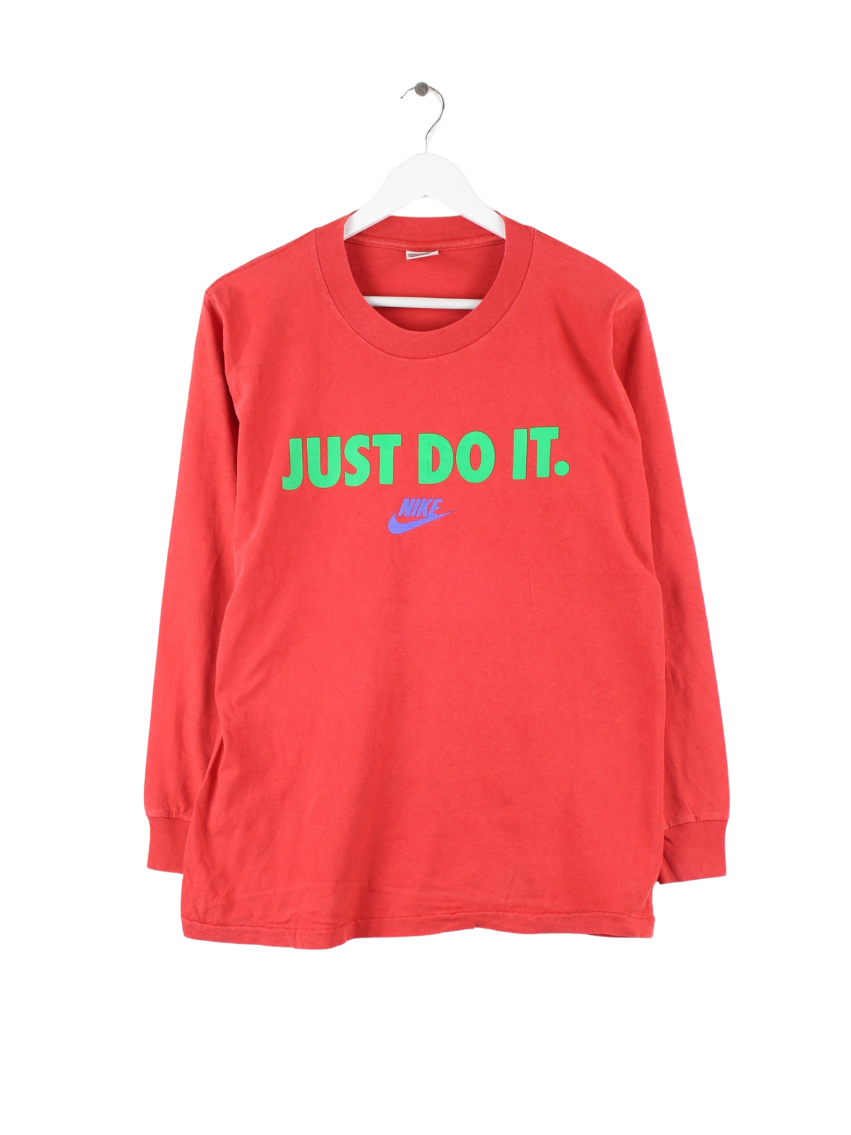 Sweatshirt der Marke Nike in Größe M aus den 90'ern. Es ist aus Baumwolle und in Rot zu bekommen. Mit schickem Tag Print.