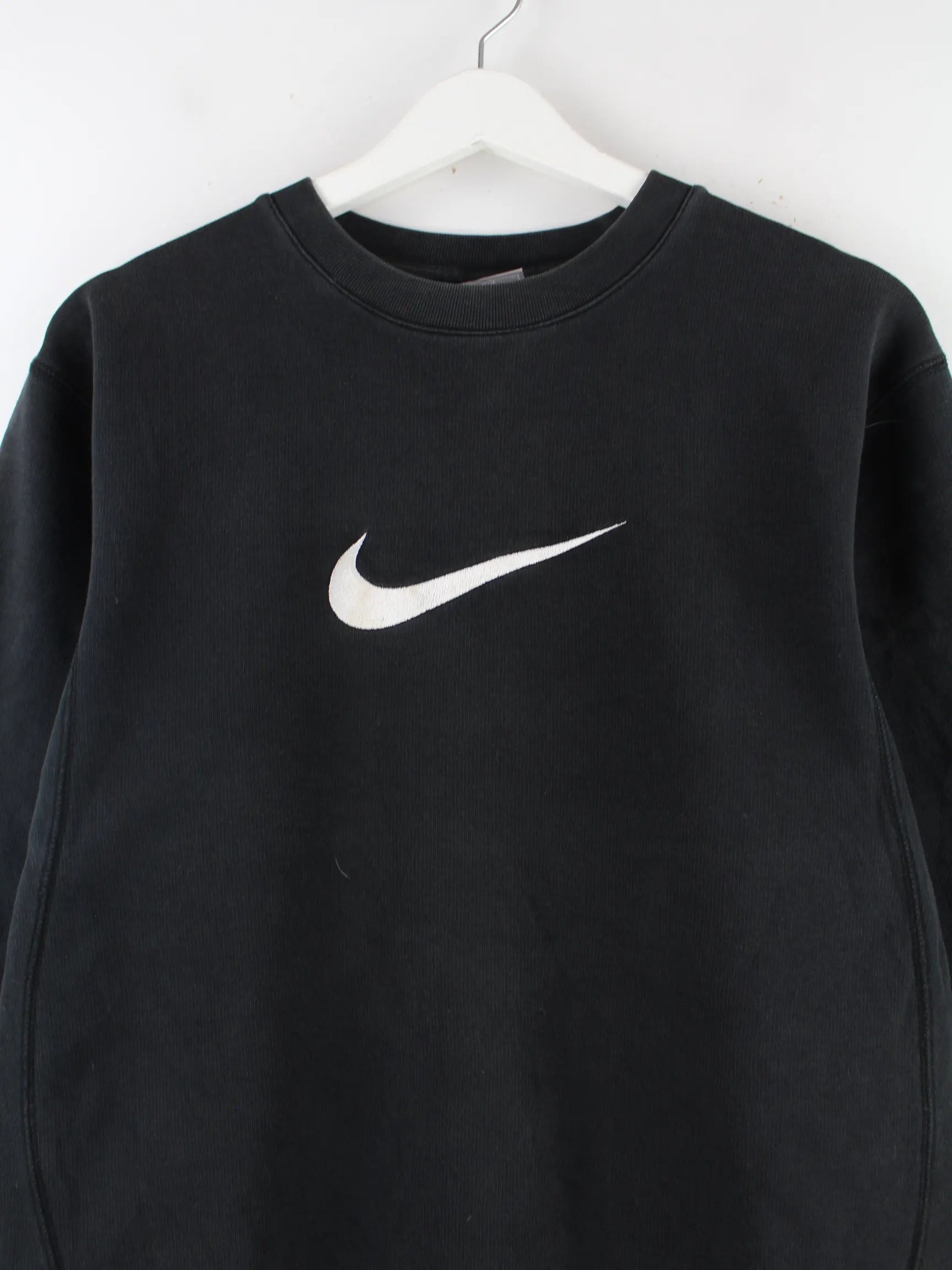 Nike Damen 00s Big Swoosh Embroidered Sweater Schwarz L