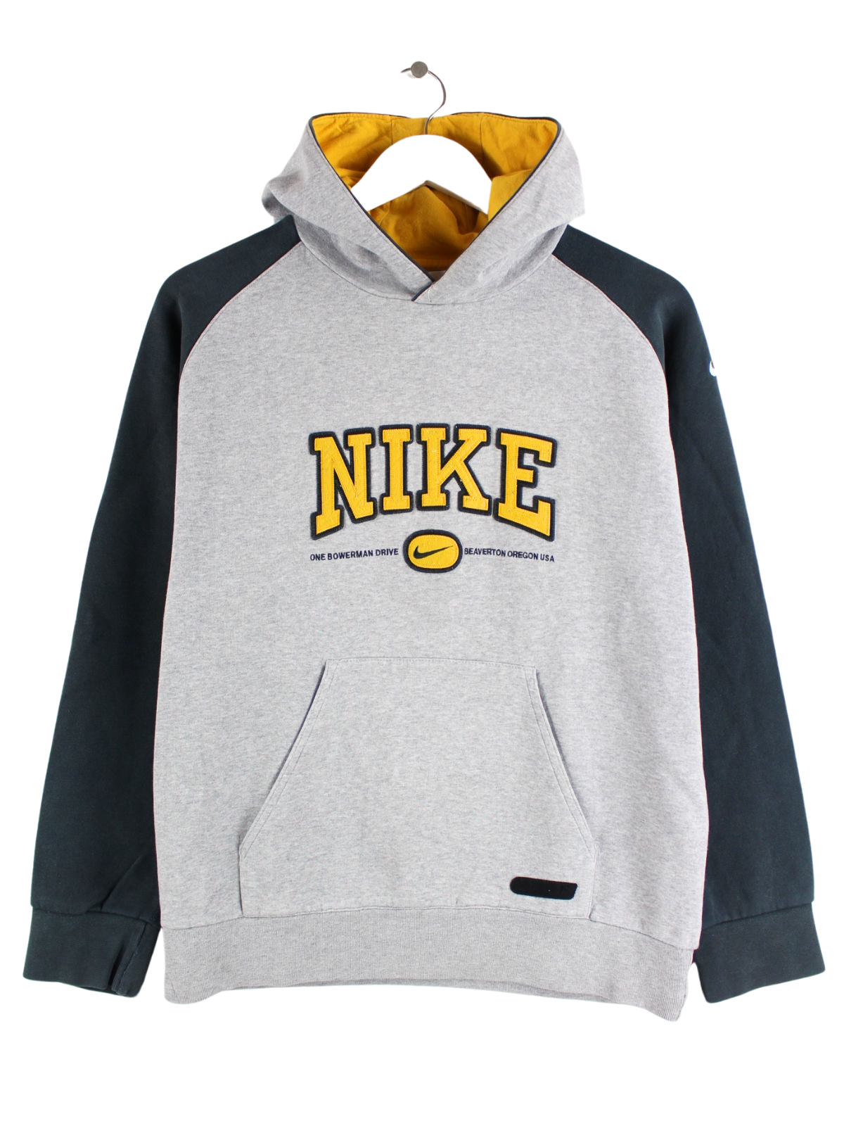 Hoodie des Labels Nike mit Stick in Größe S. Er ist aus einer Baumwollmischung angefertigt und in Grau bei uns vorrätig.