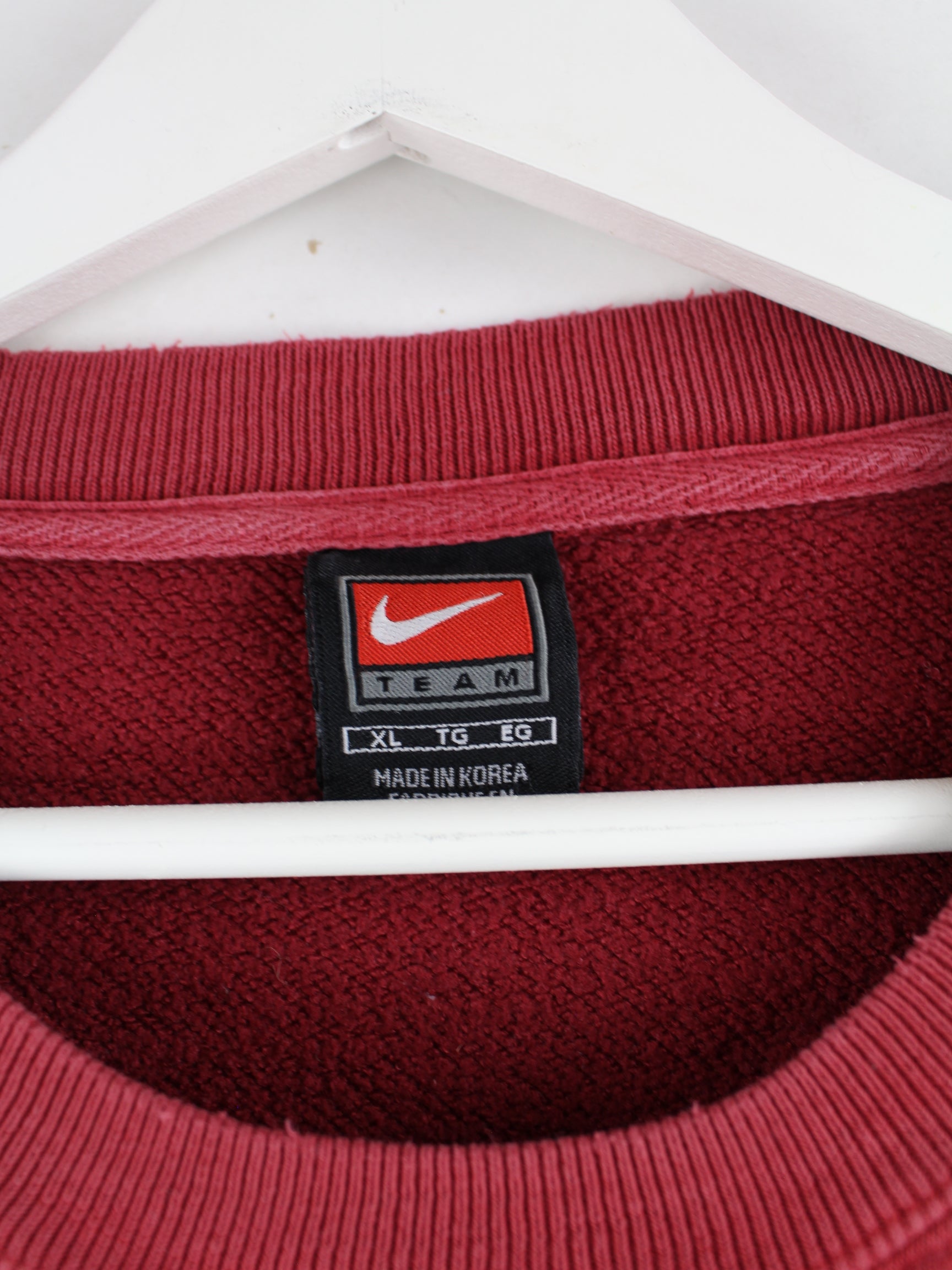 Roter Sweater mit gesticktem Logo vom Brand Nike in Größe XL. Er ist aus einer Baumwollmischung produziert und in gutem Zustand bei uns zu bekommen.