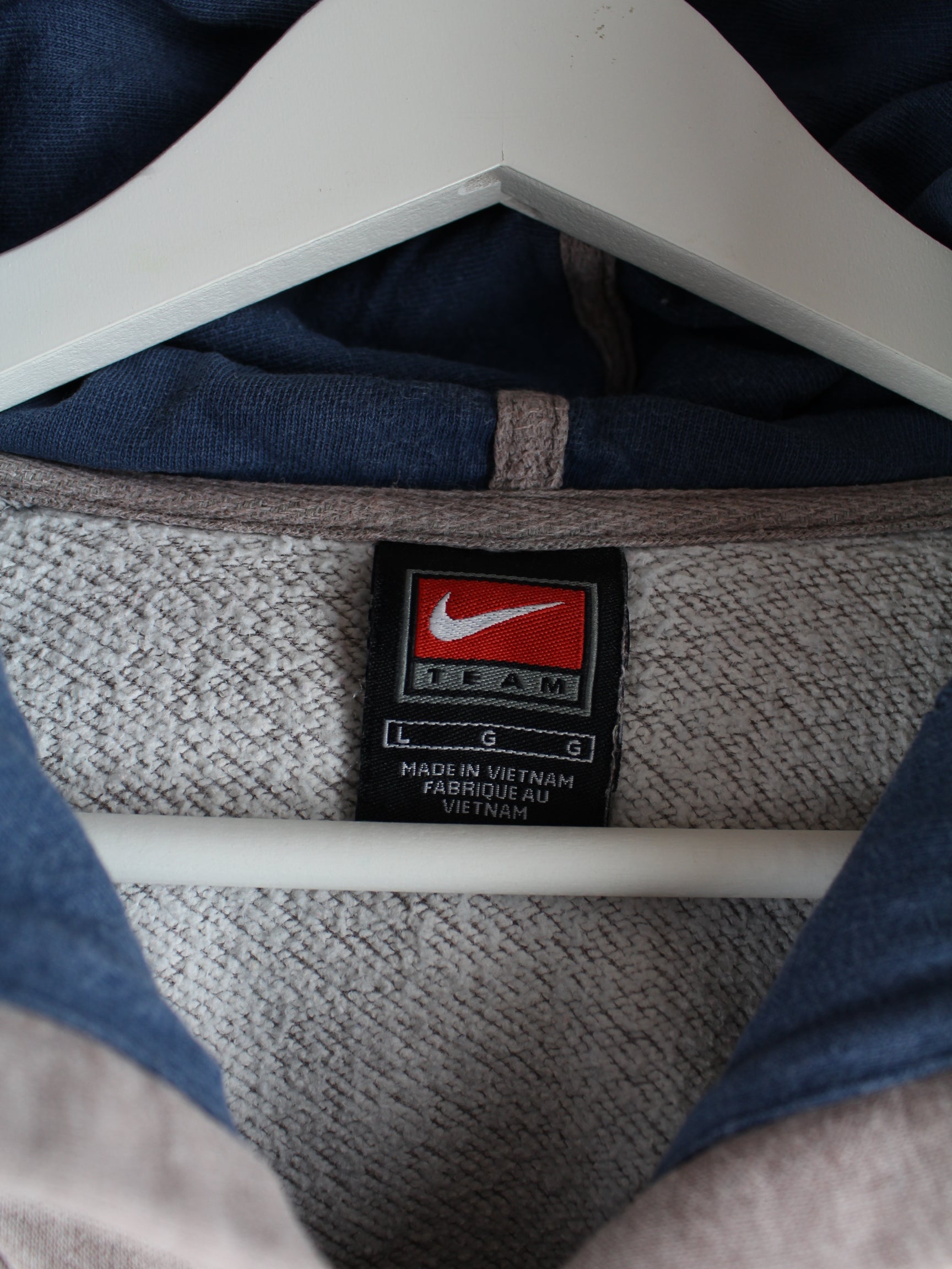 Rosafarbener Hoodie mit gestickten Motiven der Brand Nike in Größe L. Er ist aus einer Baumwollmischung und in sehr gutem Zustand im Angebot.