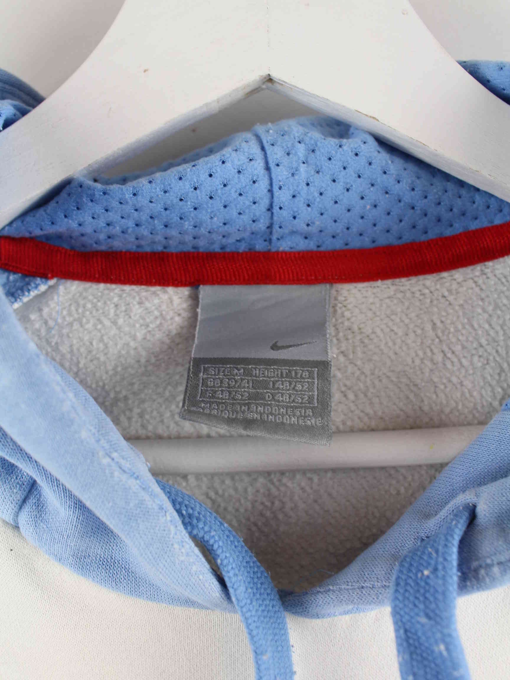 Hoodie aus dem Hause Nike mit gestickten Motiven in Größe M aus Anfang der 2000'er. Er ist aus einer Baumwollmischung hergestellt und in Blau bei uns zu bekommen.