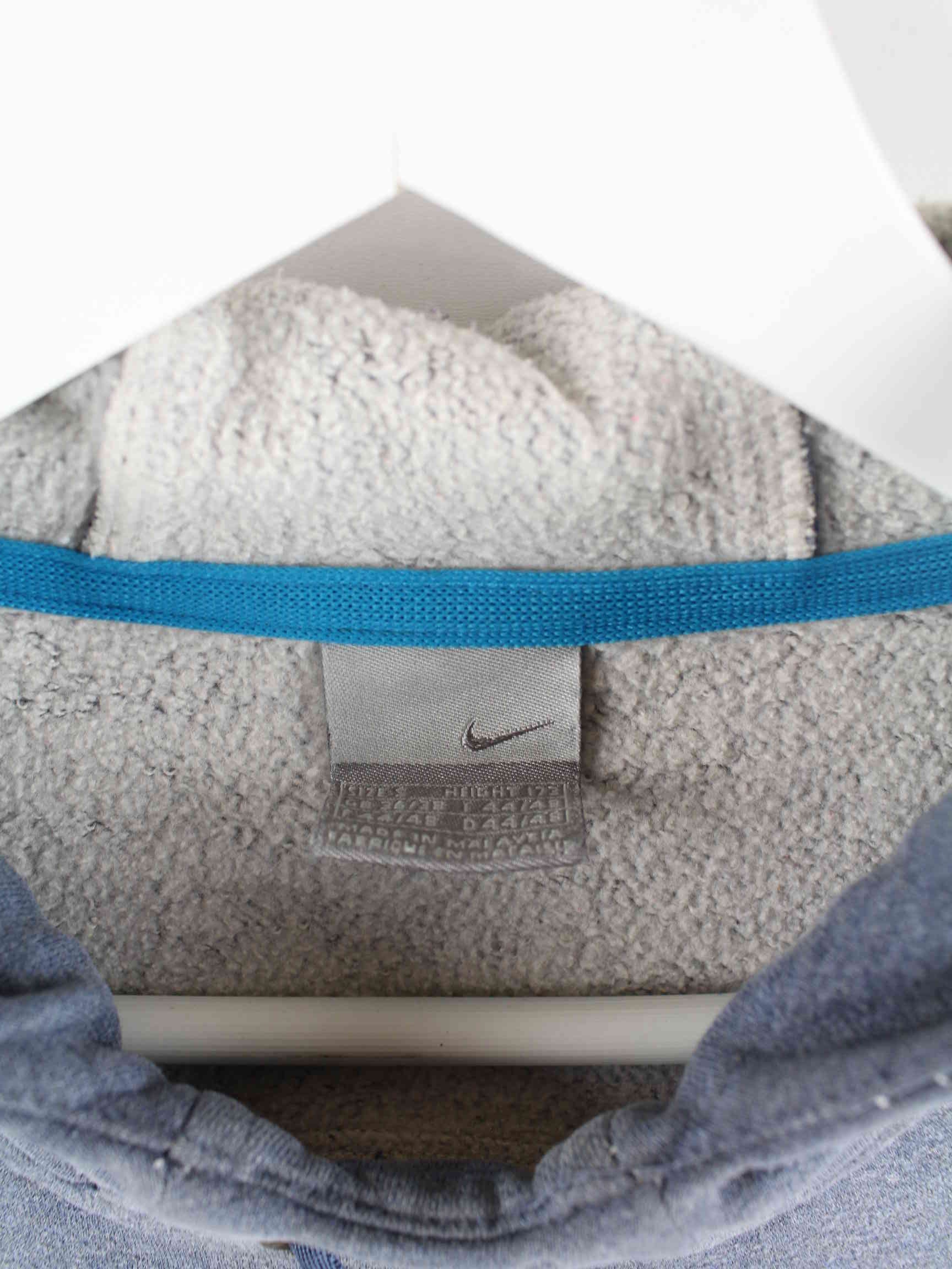 Blauer Hoodie mit gestickten Mustern vom Label Nike aus Anfang der 2000'er in Größe S. Er ist aus einer Baumwollmischung produziert und in sehr gutem Zustand im Bestand.